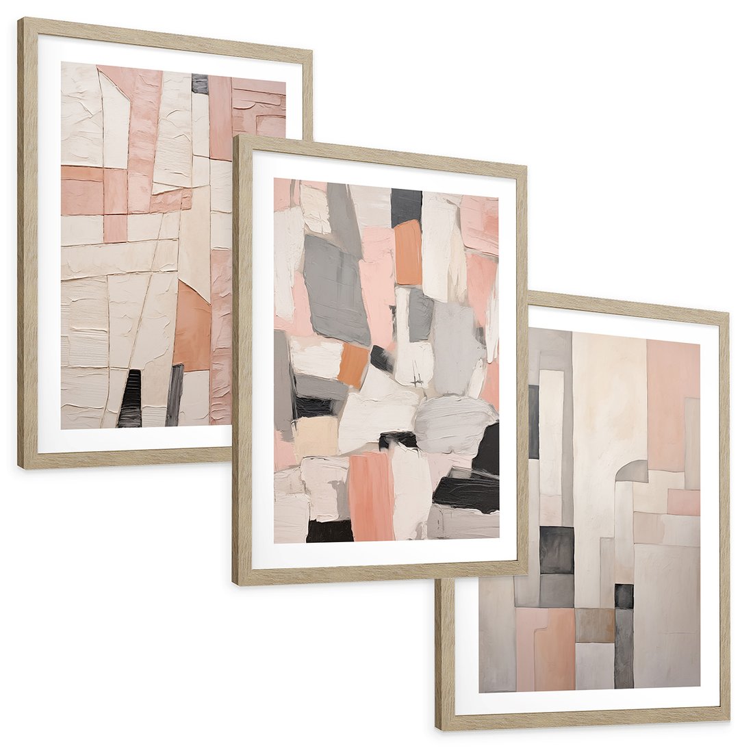 Zestaw obrazy w ramie, plakaty - abstrakcja, pastelowe, geometryczne - rama drewno