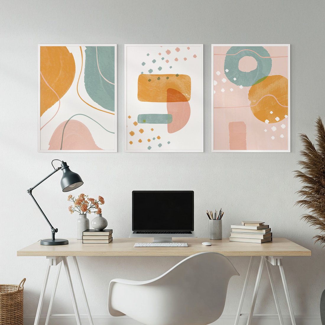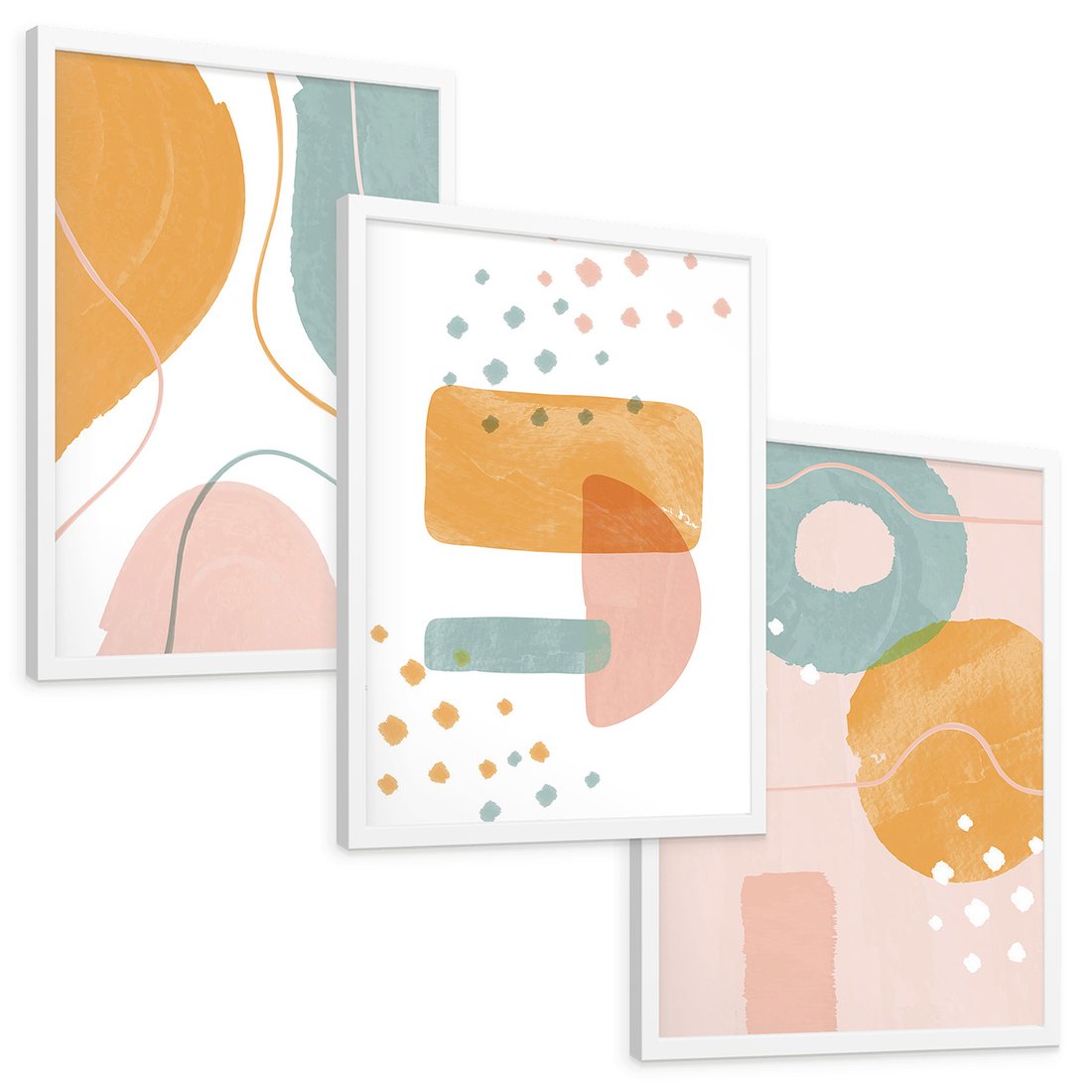Zestaw obrazy w ramie, plakaty - abstrakcja, pastelowe, kształty - rama biała