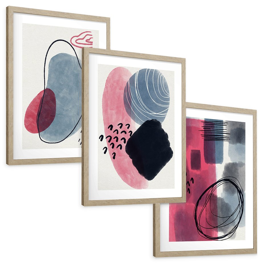 Zestaw obrazy w ramie, plakaty - abstrakcja, pastelowe, plamy, - rama drewno