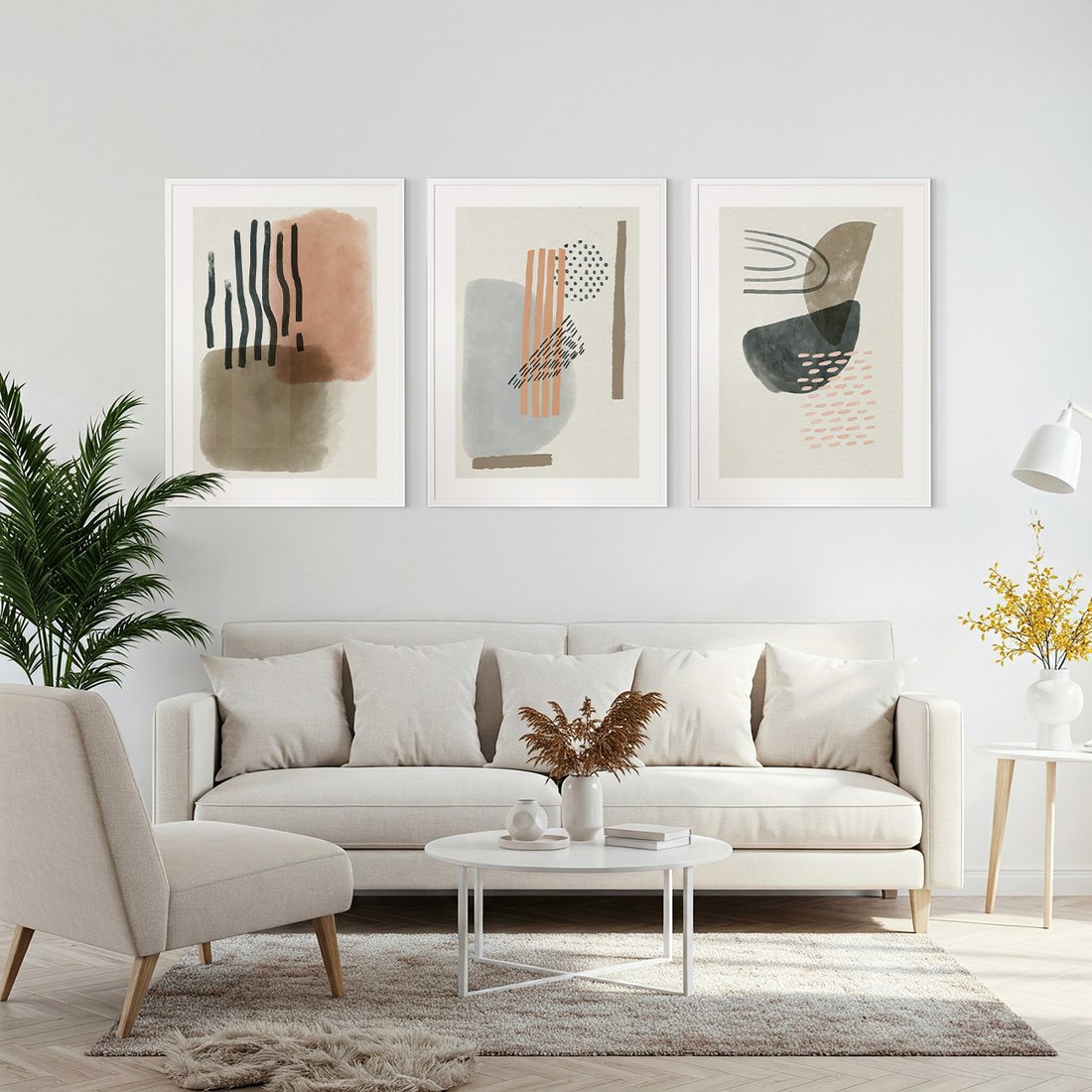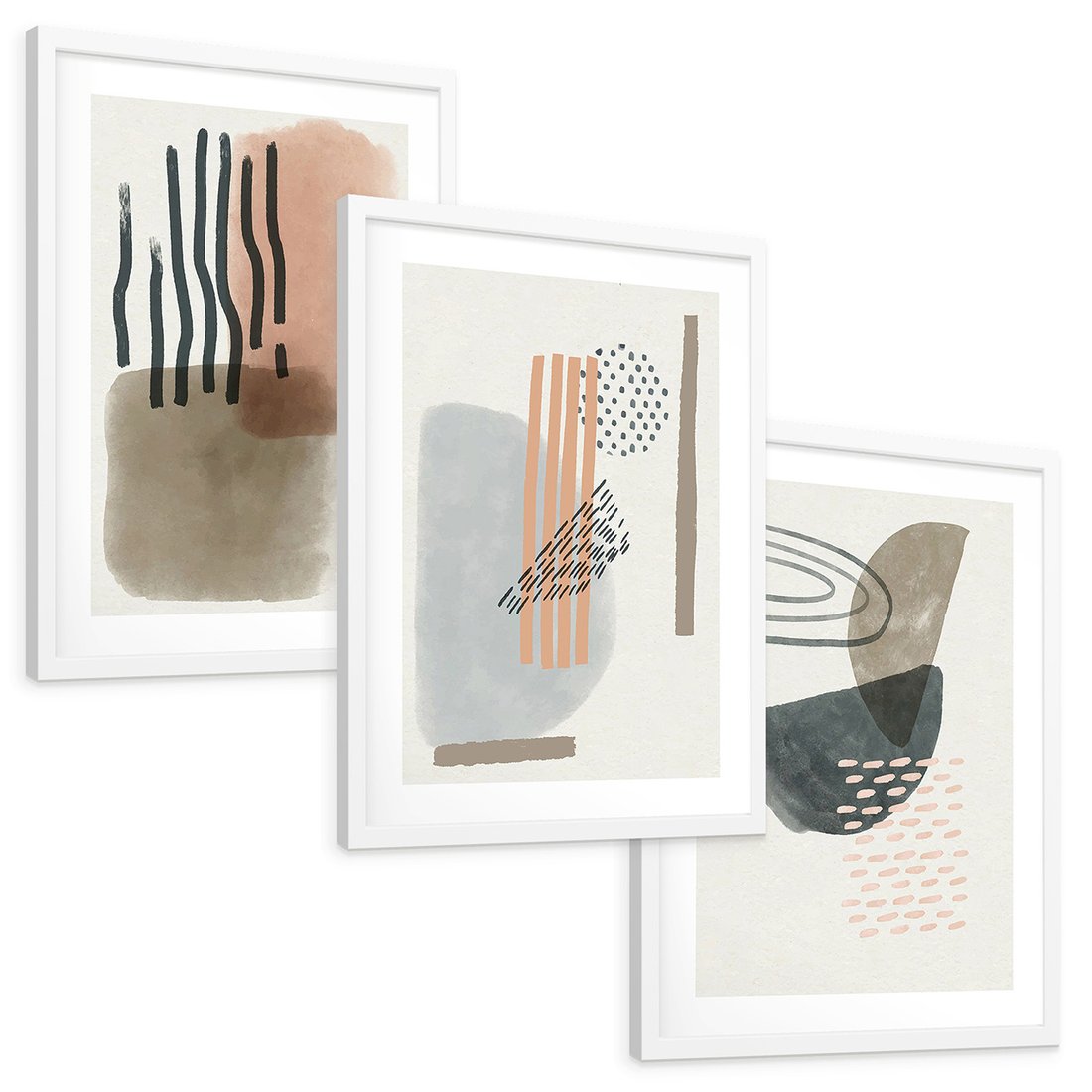 Zestaw obrazy w ramie, plakaty - abstrakcja,pastelowe,wzory - rama biała