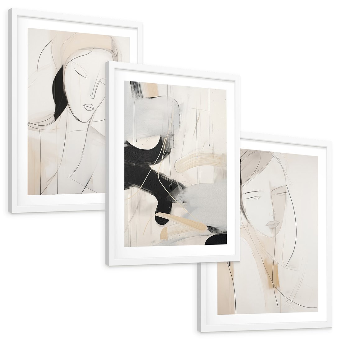Zestaw obrazy w ramie, plakaty - abstrakcja, portret, minimalizm - rama biała
