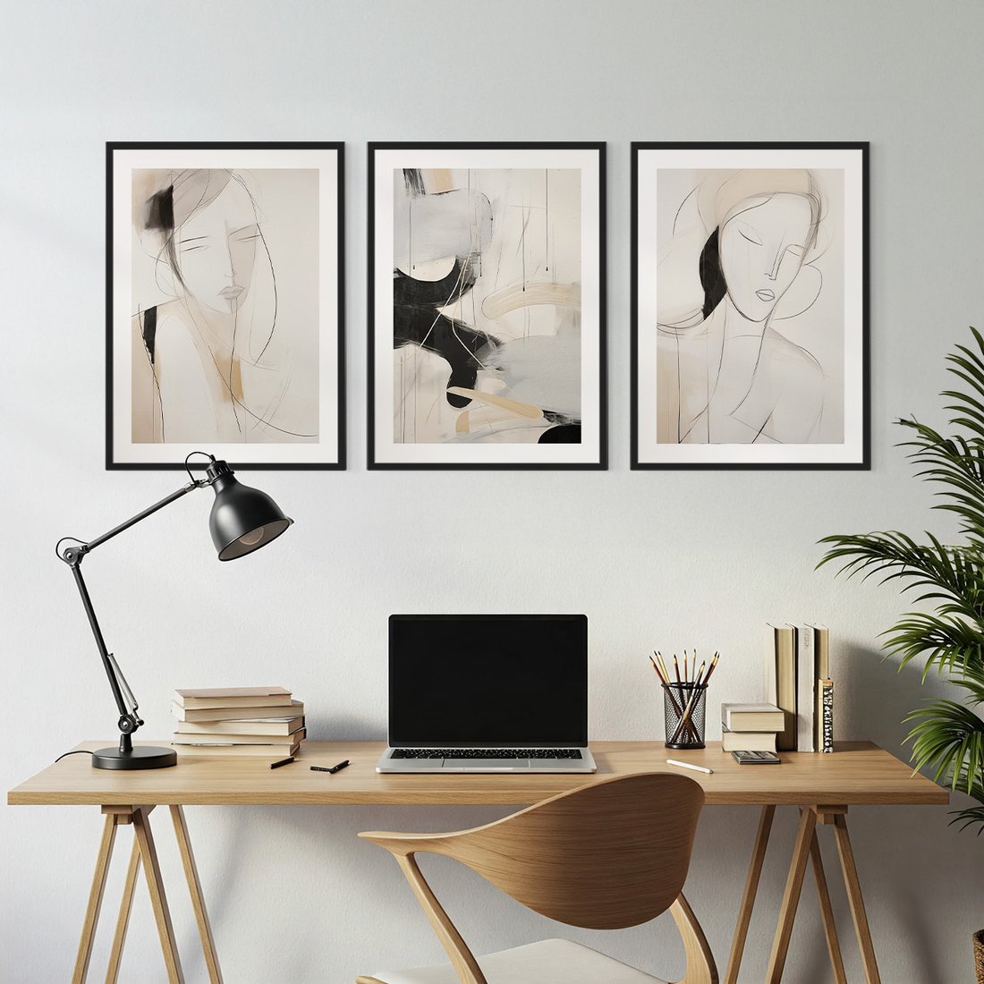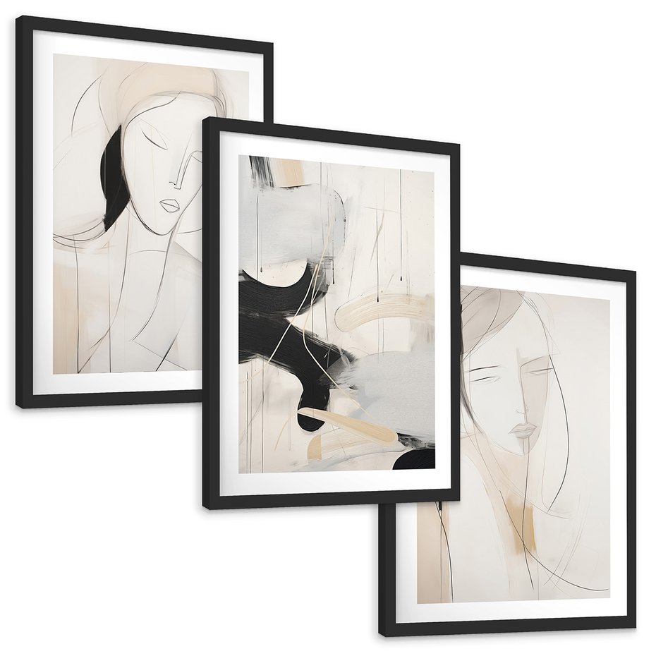 Zestaw obrazy w ramie, plakaty - abstrakcja, portret, minimalizm - rama czarna