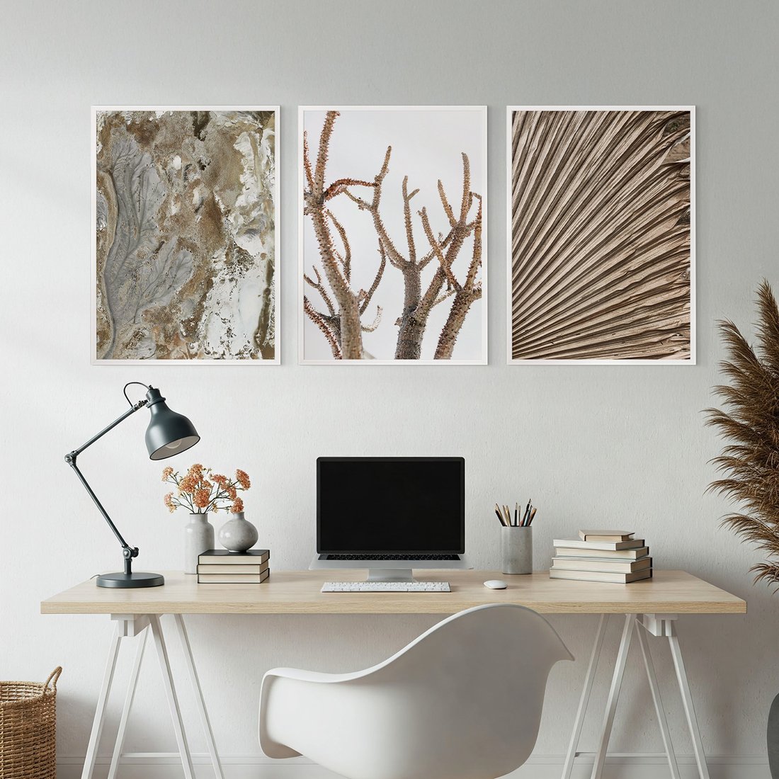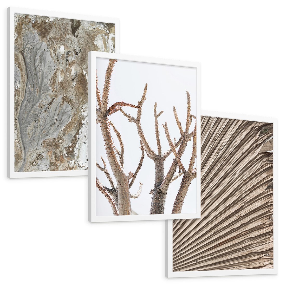 Zestaw obrazy w ramie, plakaty - abstrakcja, roślina, natura - rama biała