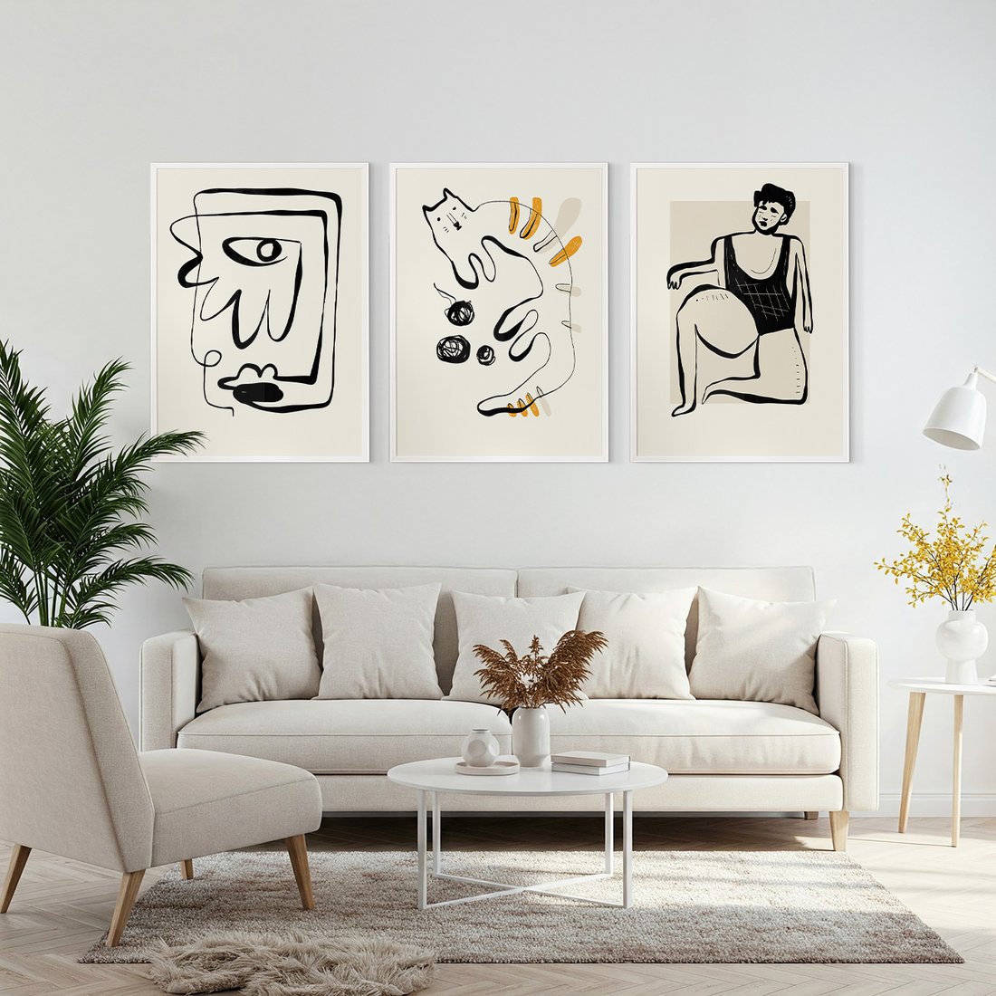 Przenieś piękno sztuki do swojego domu dzięki naszemu starannie skomponowanemu produktowi zestaw obrazów abstrakcja, rysunek, minimalizm. Każdy plakat, oprawiony w elegancką ramę, łączy w sobie estetykę i trwałość. Uniwersalne wzornictwo sprawia, że te dekoracje ścienne doskonale komponują się z różnymi stylami wnętrz, od nowoczesnych po klasyczne. Łatwość montażu pozwala na szybką i bezproblemową metamorfozę Twojej przestrzeni. To również idealny pomysł na wyszukany prezent, który z pewnością zachwyci.