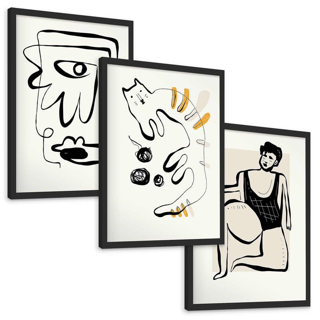 Zestaw obrazy w ramie, plakaty - abstrakcja, rysunek, minimalizm - rama czarna