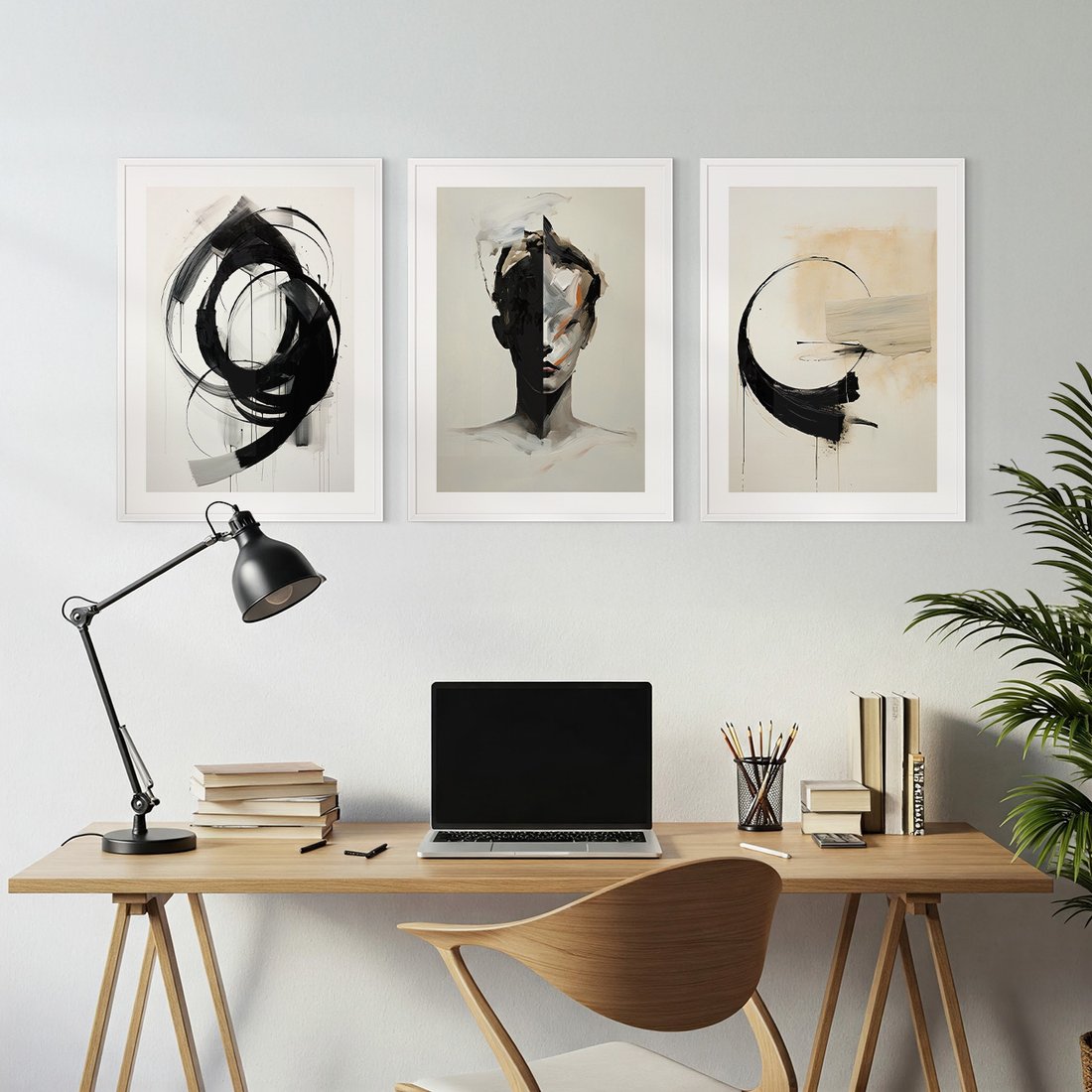 Zestaw obrazy w ramie, plakaty - abstrakcja,sztuka,nowoczesne - rama biała