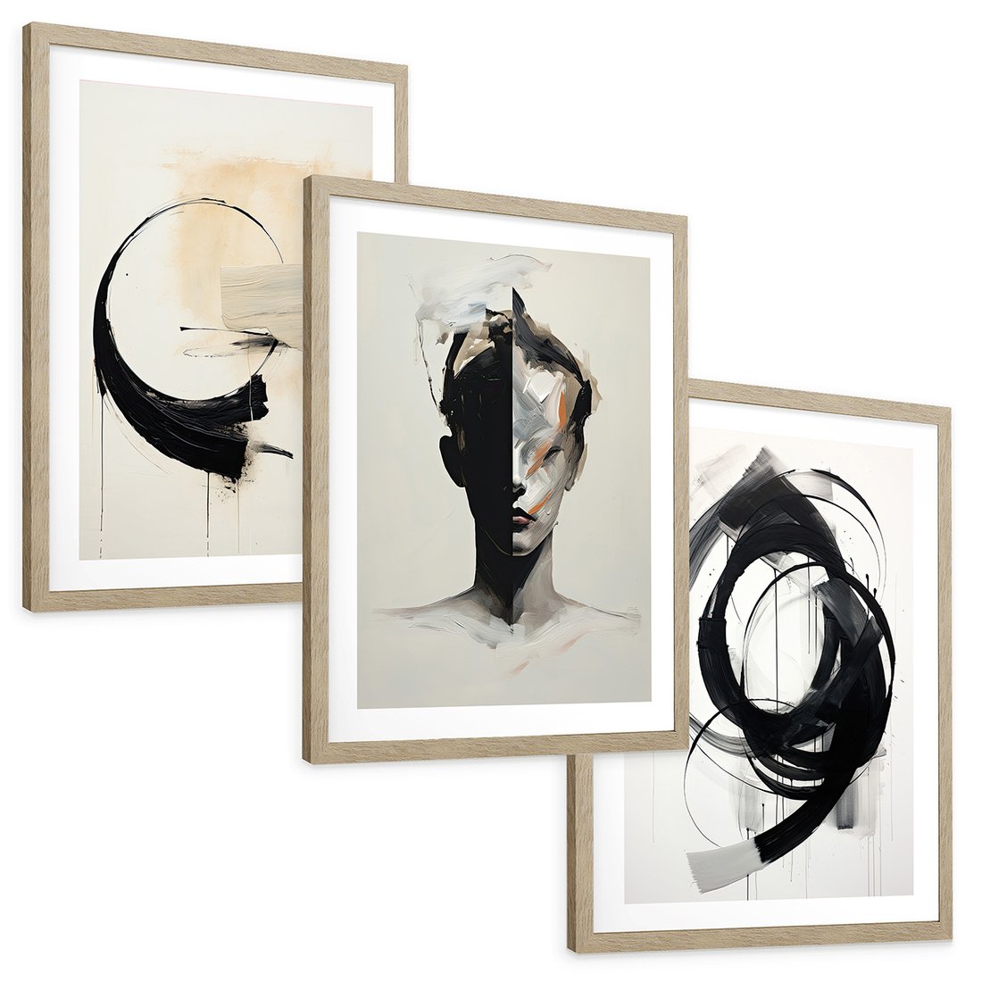 Zestaw obrazy w ramie, plakaty - abstrakcja,sztuka,nowoczesne - rama drewno
