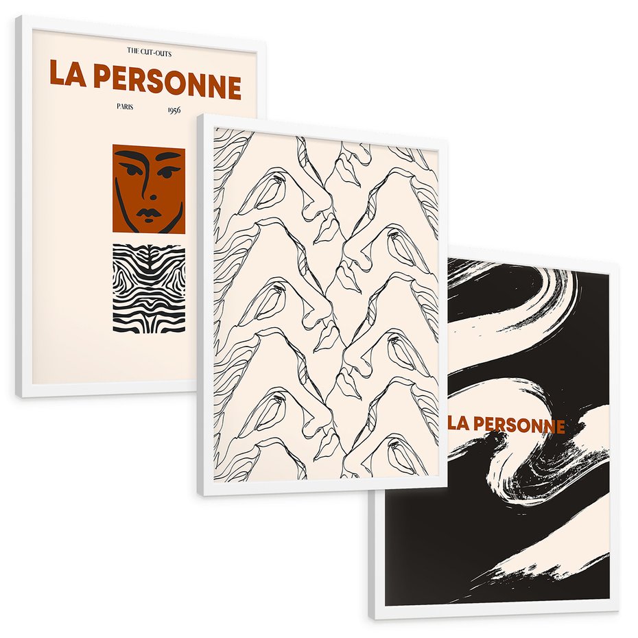 Zestaw obrazy w ramie, plakaty - abstrakcja, twarze, vintage - rama biała