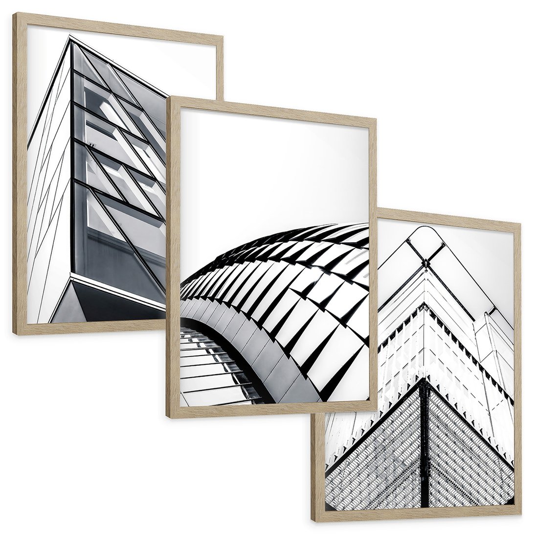 Zestaw obrazy w ramie, plakaty - architektura, budynek, fasada - rama drewno