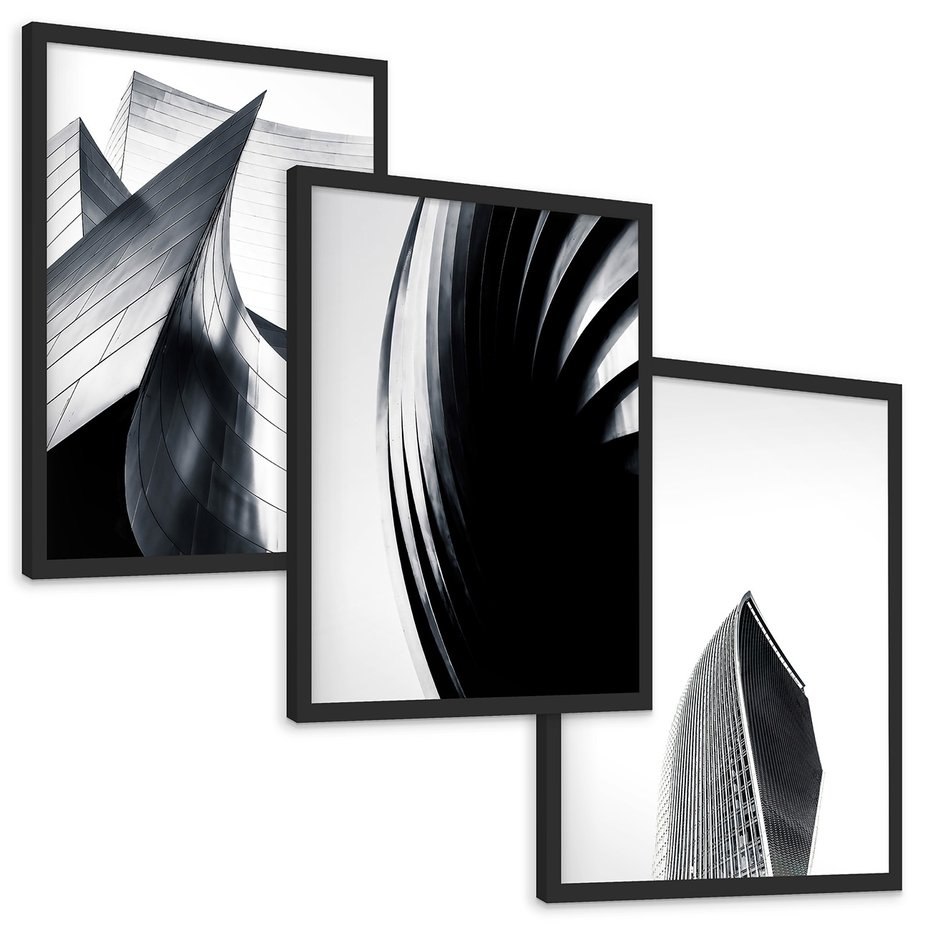 Zestaw obrazy w ramie, plakaty - architektura, budynki, detale - rama czarna
