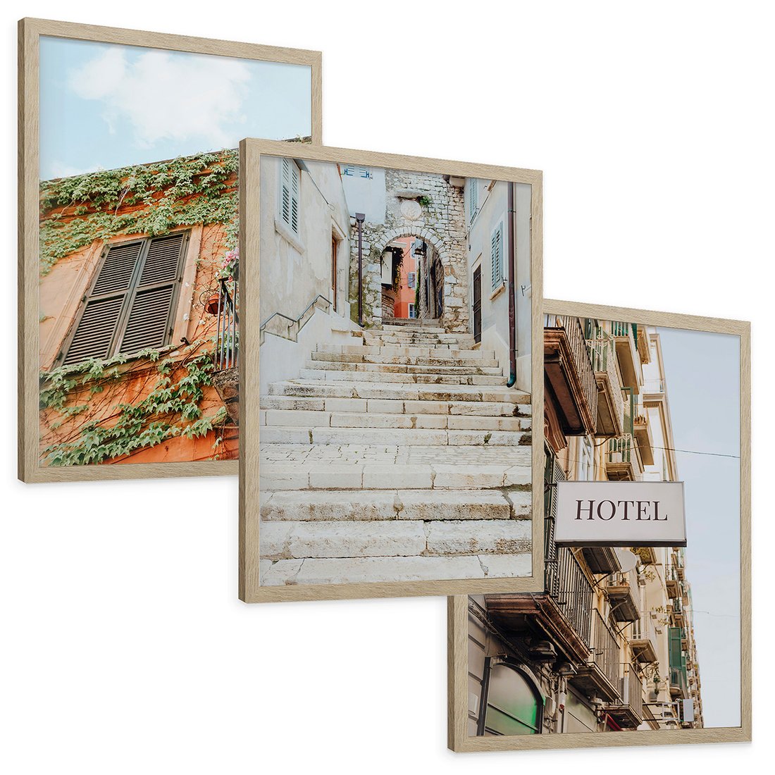 Zestaw obrazy w ramie, plakaty - architektura, budynki, kamień - rama drewno