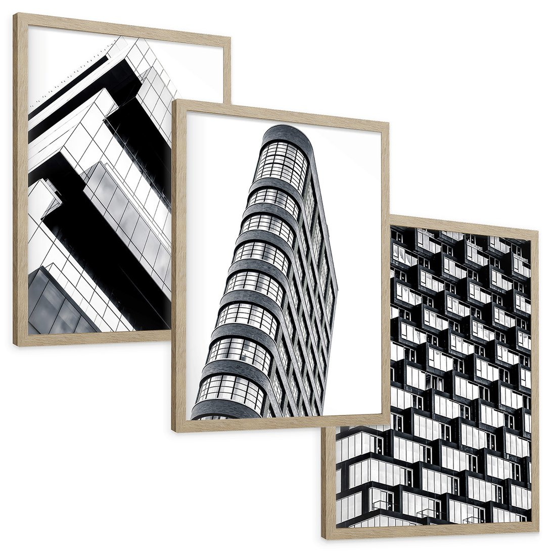 Zestaw obrazy w ramie, plakaty - architektura, budynki, miasto - rama drewno