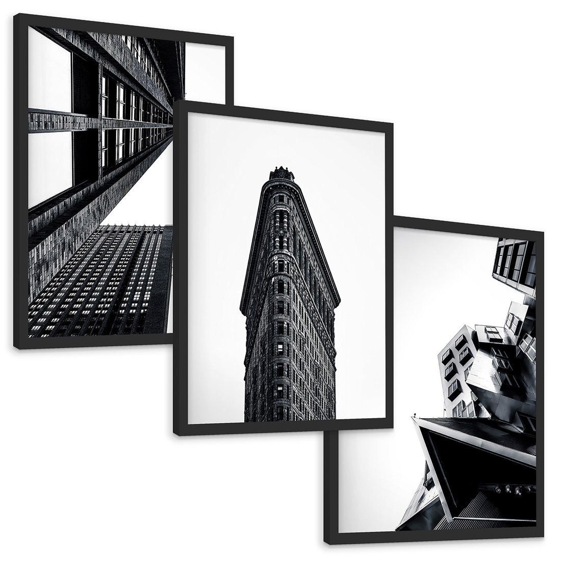 Zestaw obrazy w ramie, plakaty - architektura, budynki, miejski - rama czarna