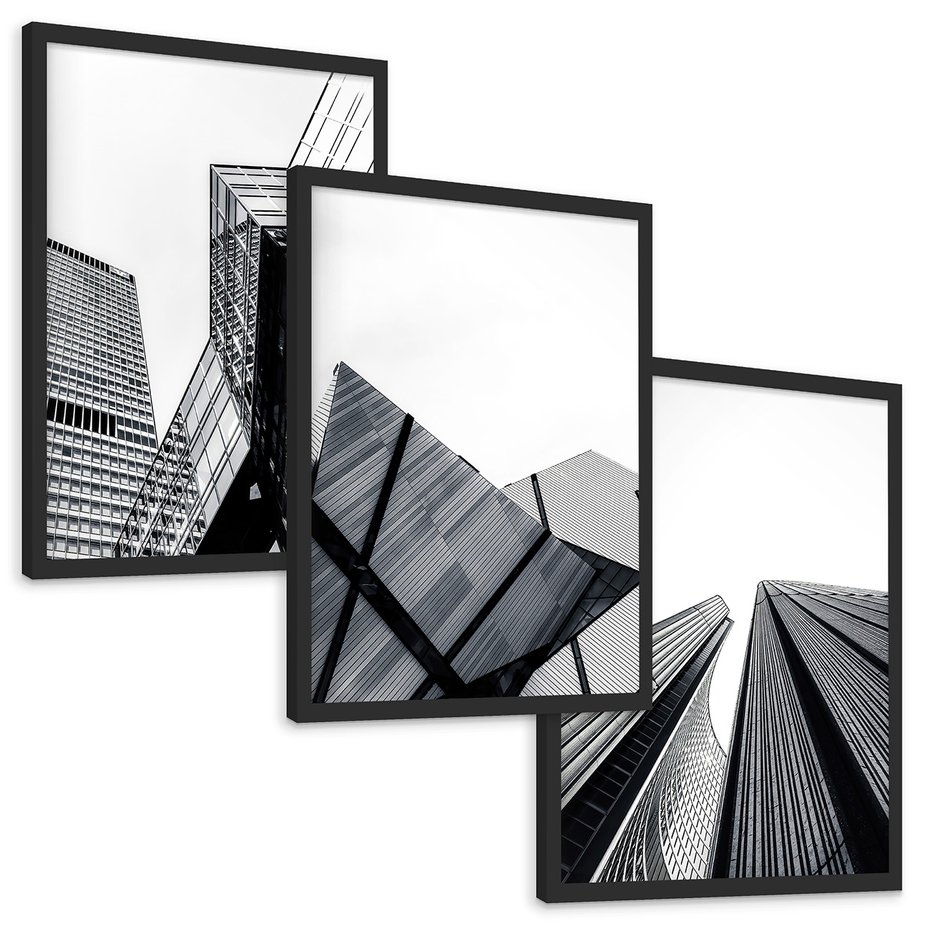 Zestaw obrazy w ramie, plakaty - architektura, budynki, miejski - rama czarna