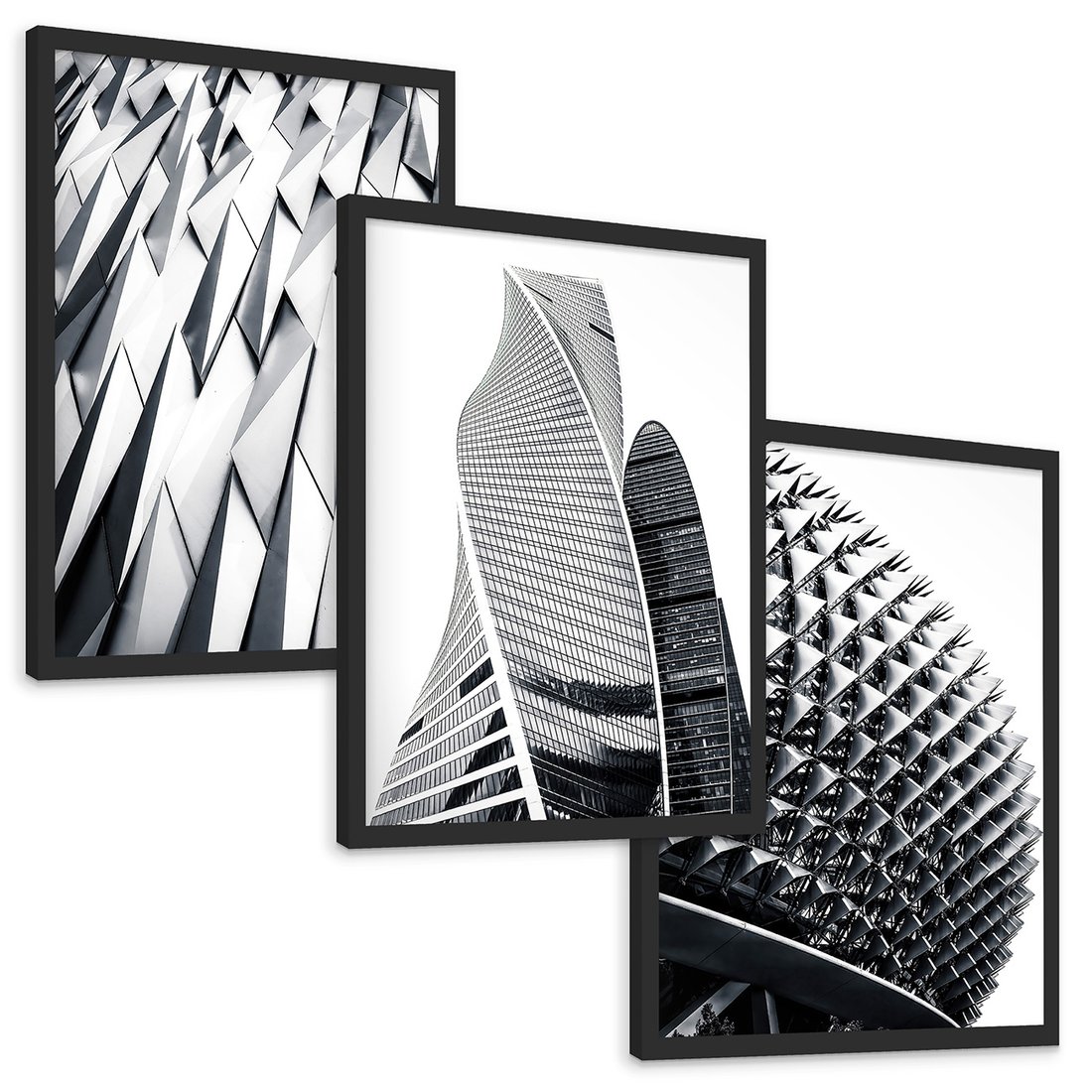 Zestaw obrazy w ramie, plakaty - architektura, budynki, nowoczesność - rama czarna