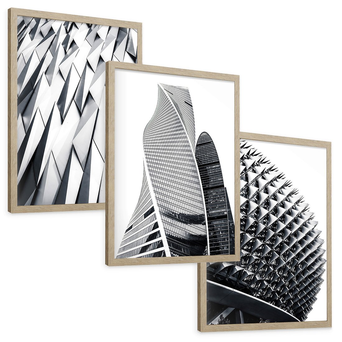 Zestaw obrazy w ramie, plakaty - architektura, budynki, nowoczesność - rama drewno