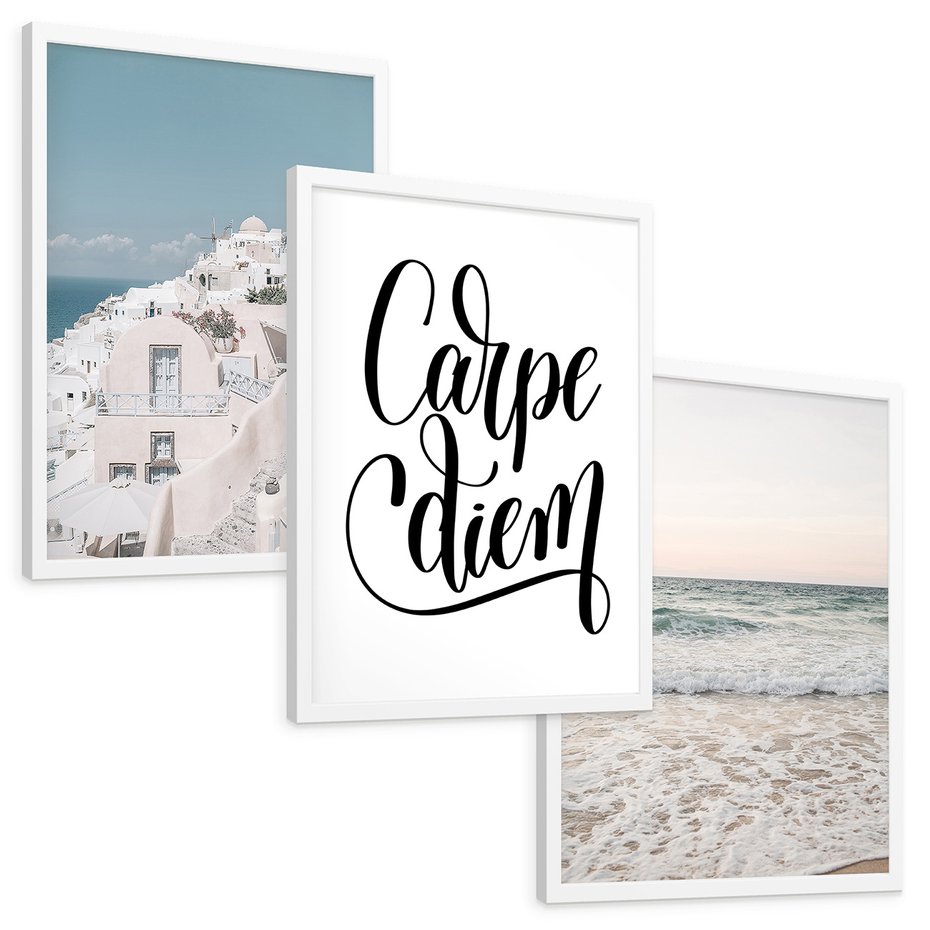 Zestaw obrazy w ramie, plakaty - architektura, morze, plaża - rama biała