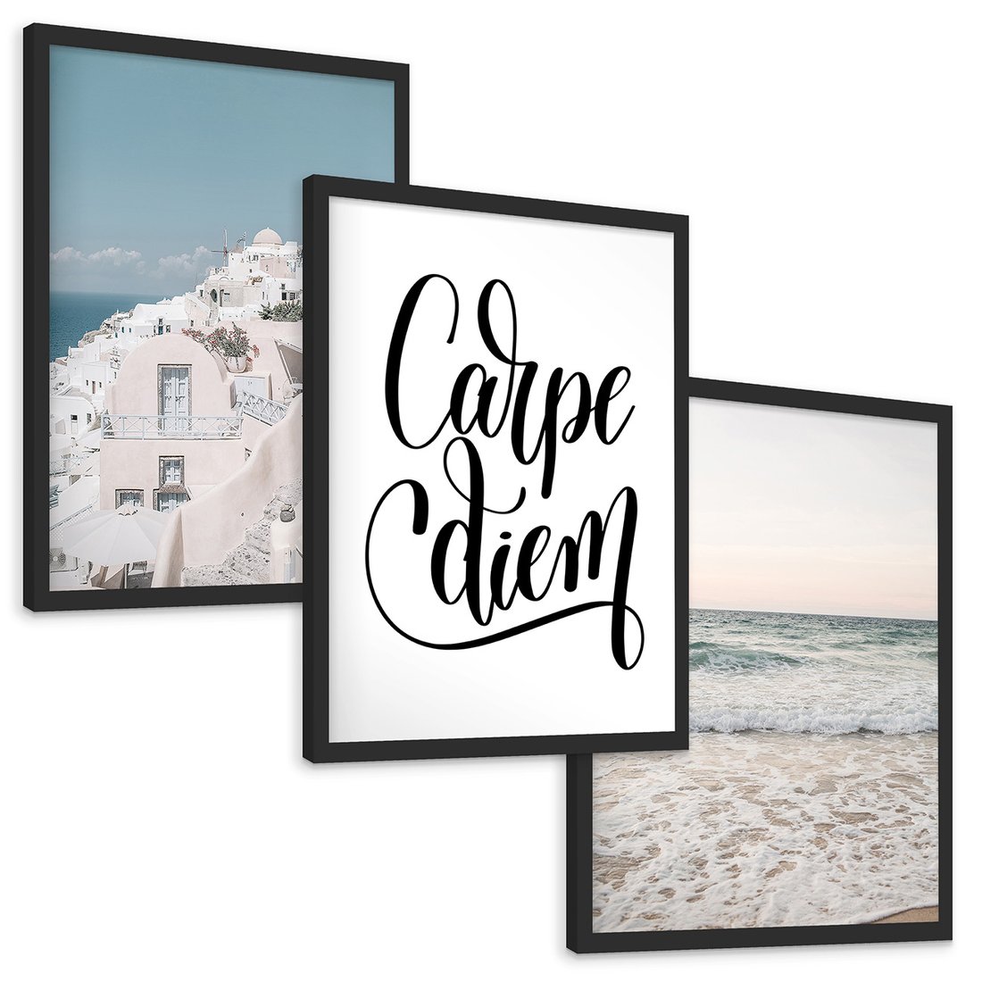 Zestaw obrazy w ramie, plakaty - architektura, morze, plaża - rama czarna