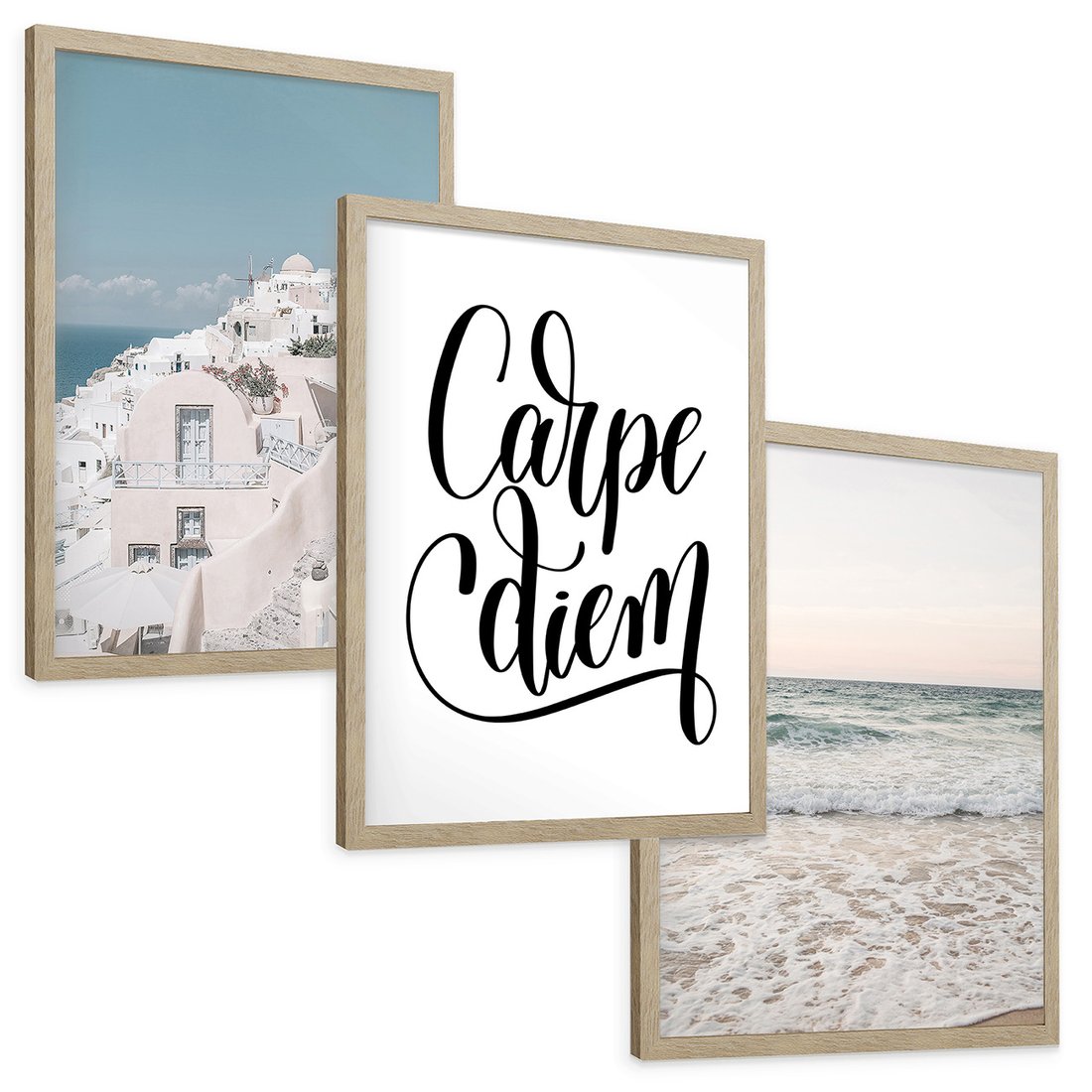 Zestaw obrazy w ramie, plakaty - architektura, morze, plaża - rama drewno