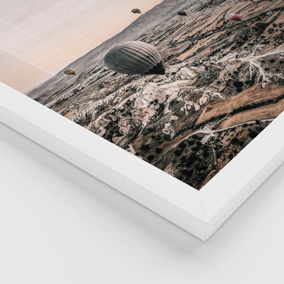 Zestaw obrazy w ramie, plakaty - balony, morze, plaża - rama biała