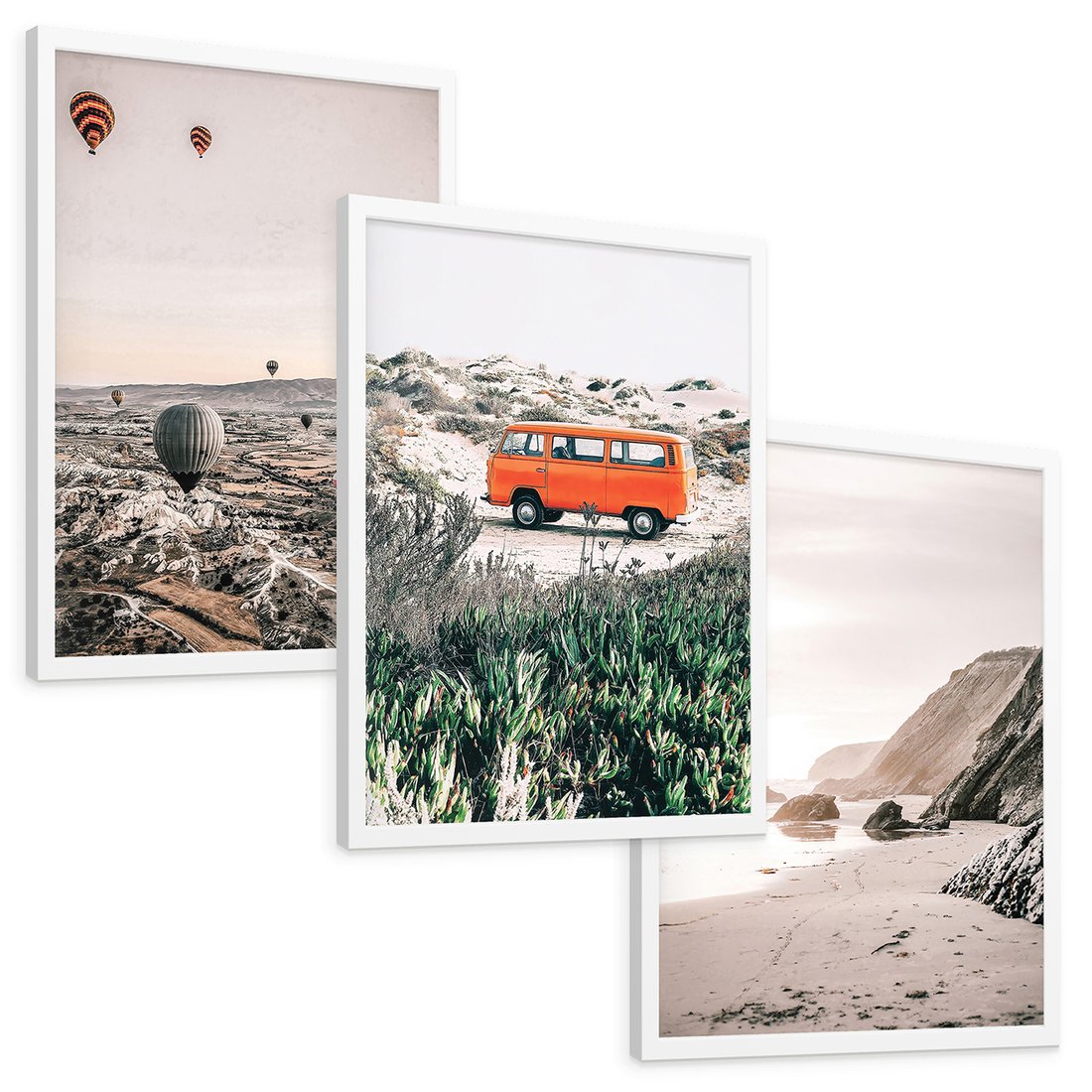 • Zestaw obrazy w ramie, plakaty - balony, morze, plaża