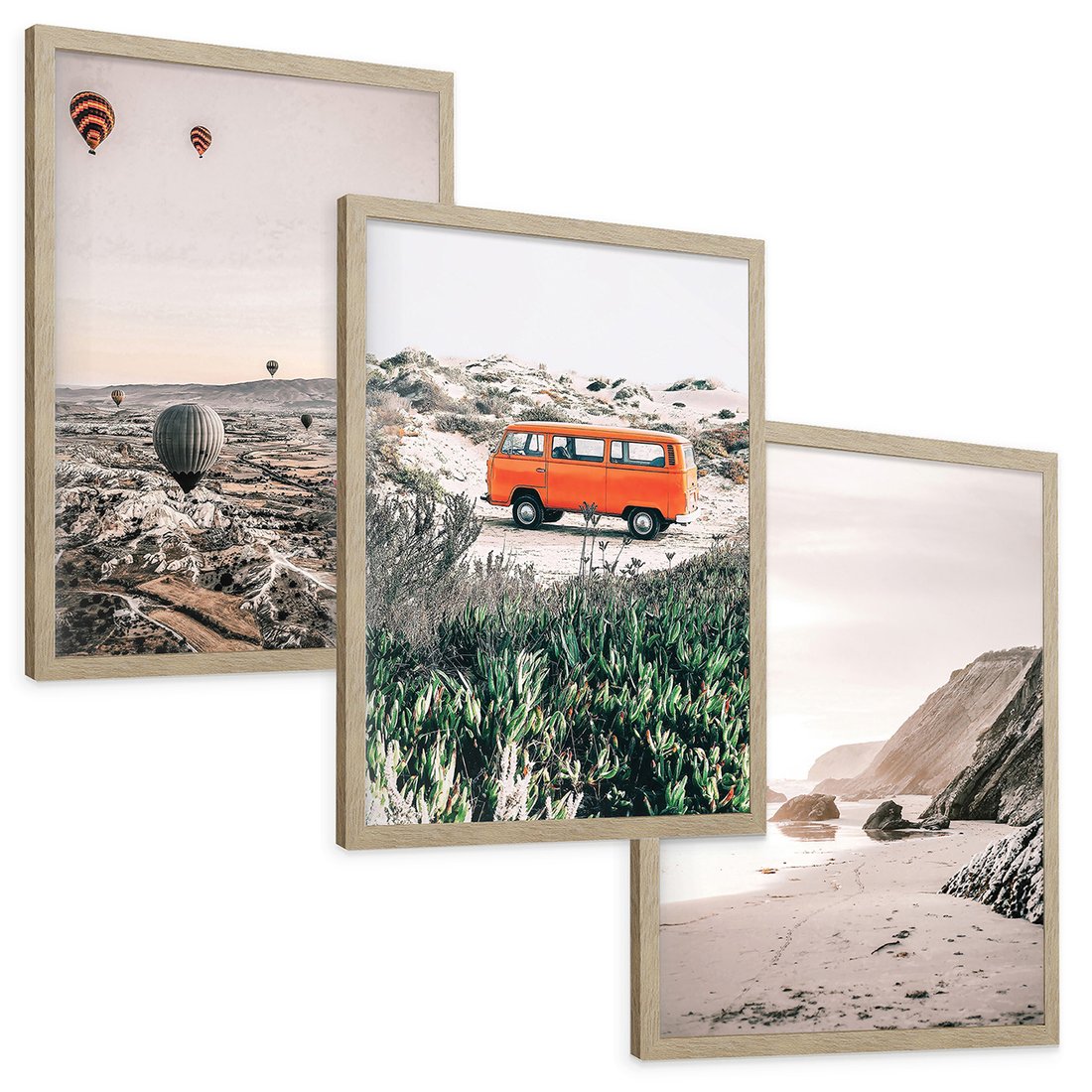 Zestaw obrazy w ramie, plakaty - balony, morze, plaża - rama drewno