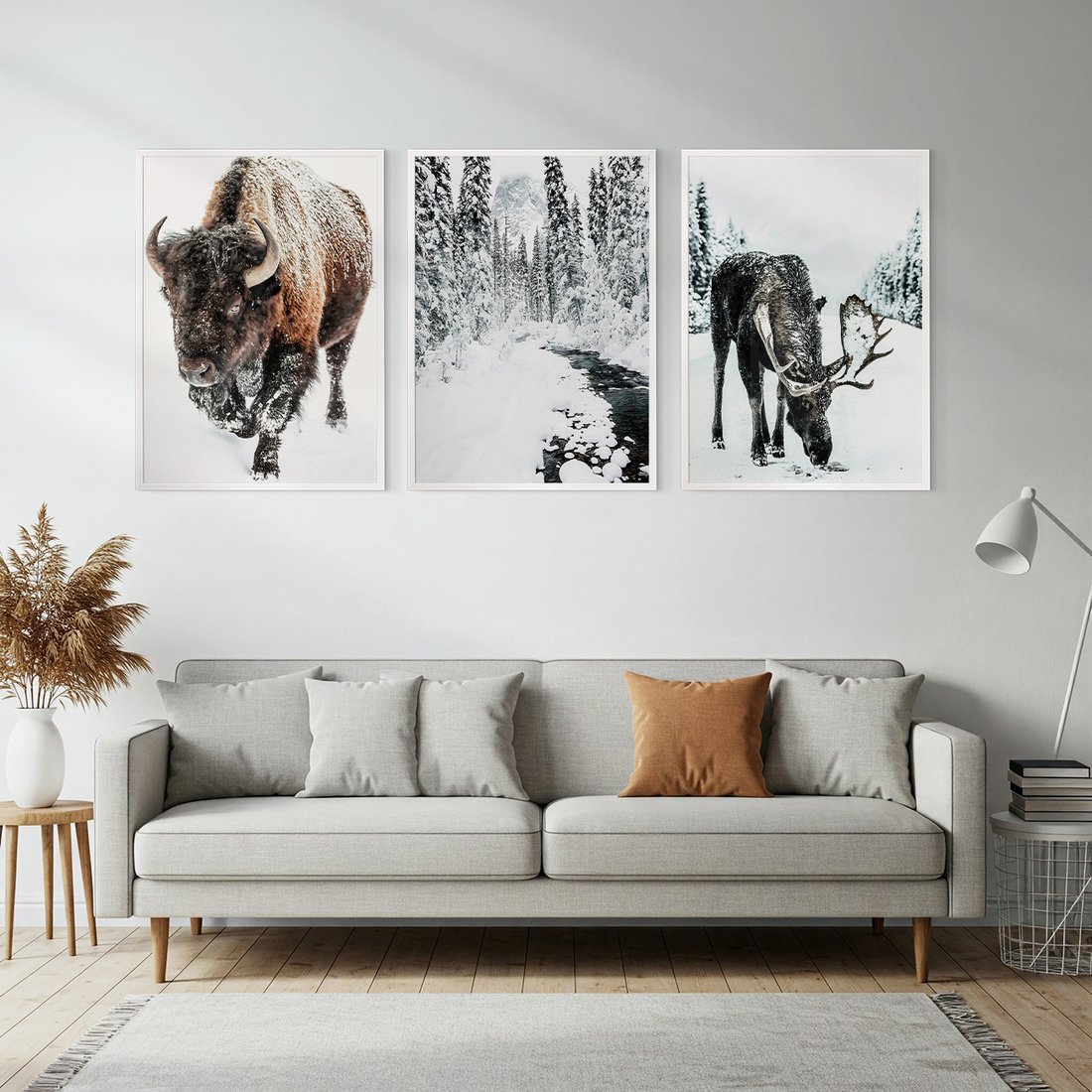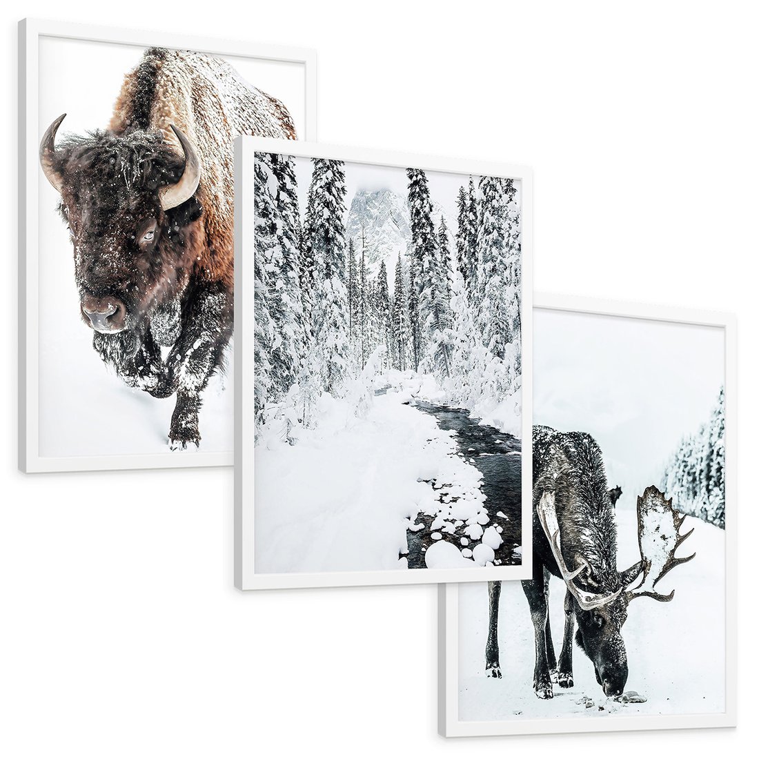 - Zestaw obrazy w ramie, plakaty - bizon, łoś, zima