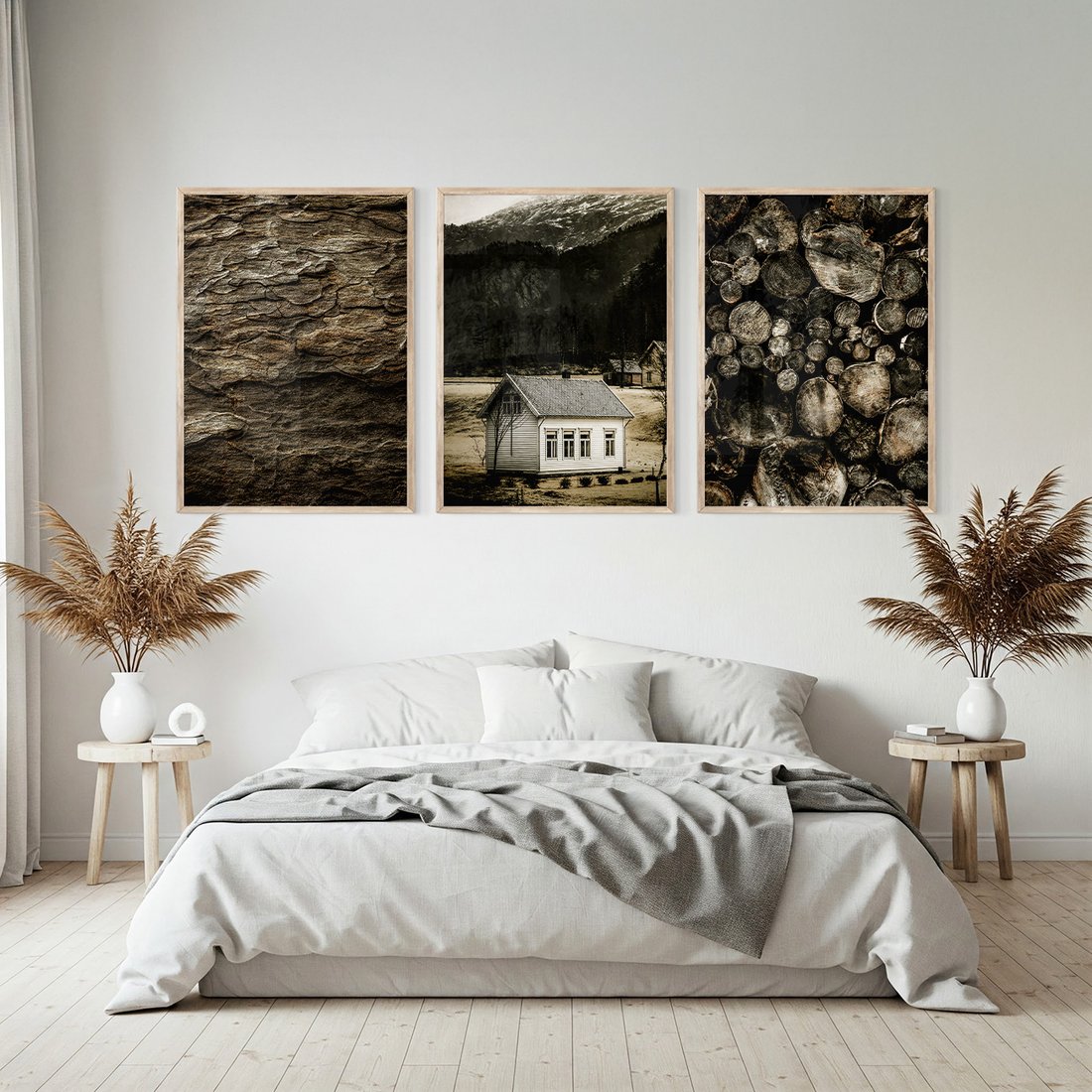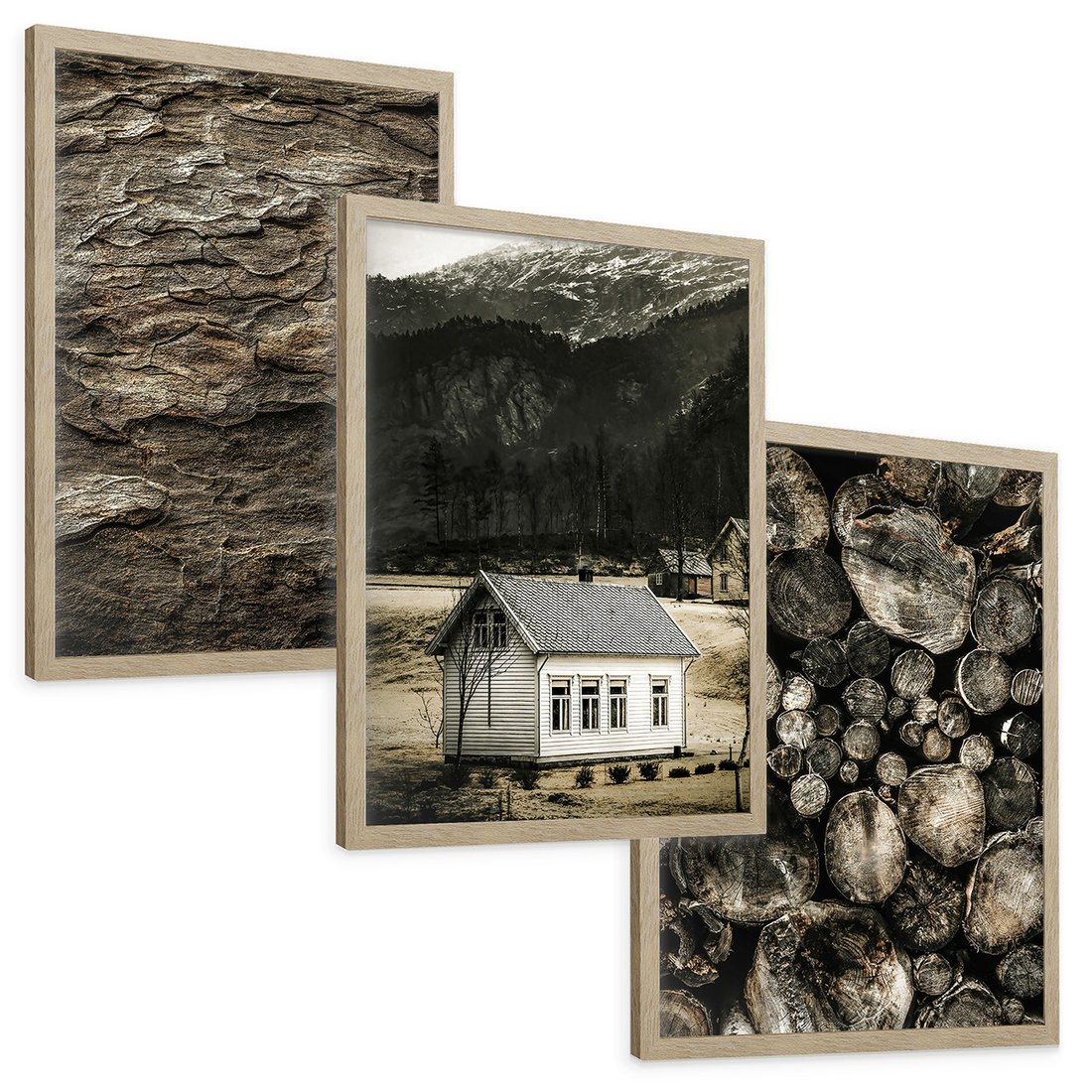 Zestaw obrazy w ramie, plakaty - dom, natura, drewno - rama drewno