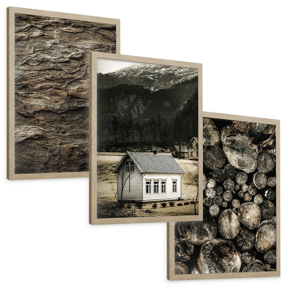 - Zestaw obrazy w ramie, plakaty - dom, natura, drewno