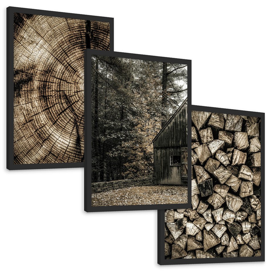 - Zestaw obrazy w ramie, plakaty - drewno, kora, natura