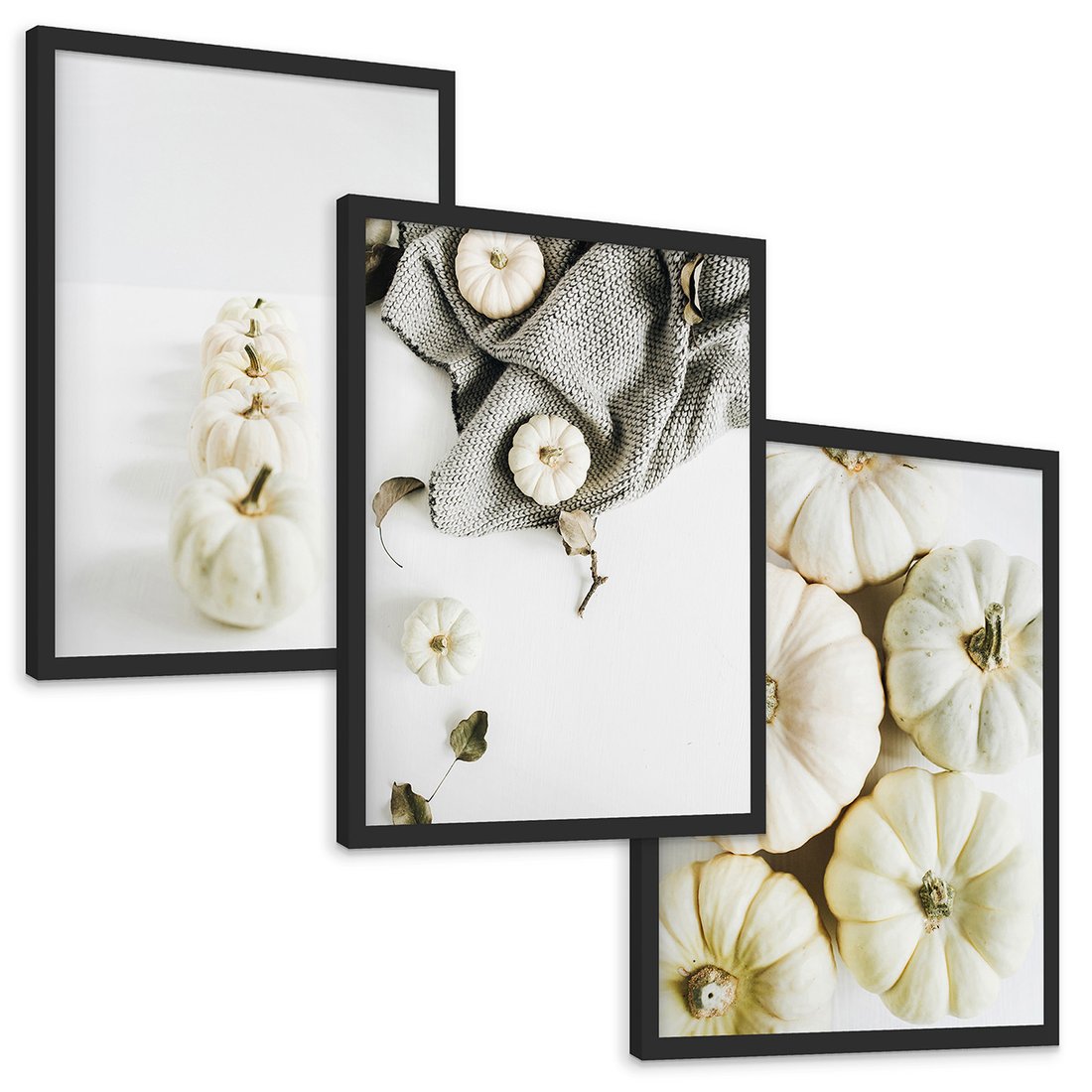 Zestaw obrazy w ramie, plakaty - dynie, jesień, dekoracje - rama czarna