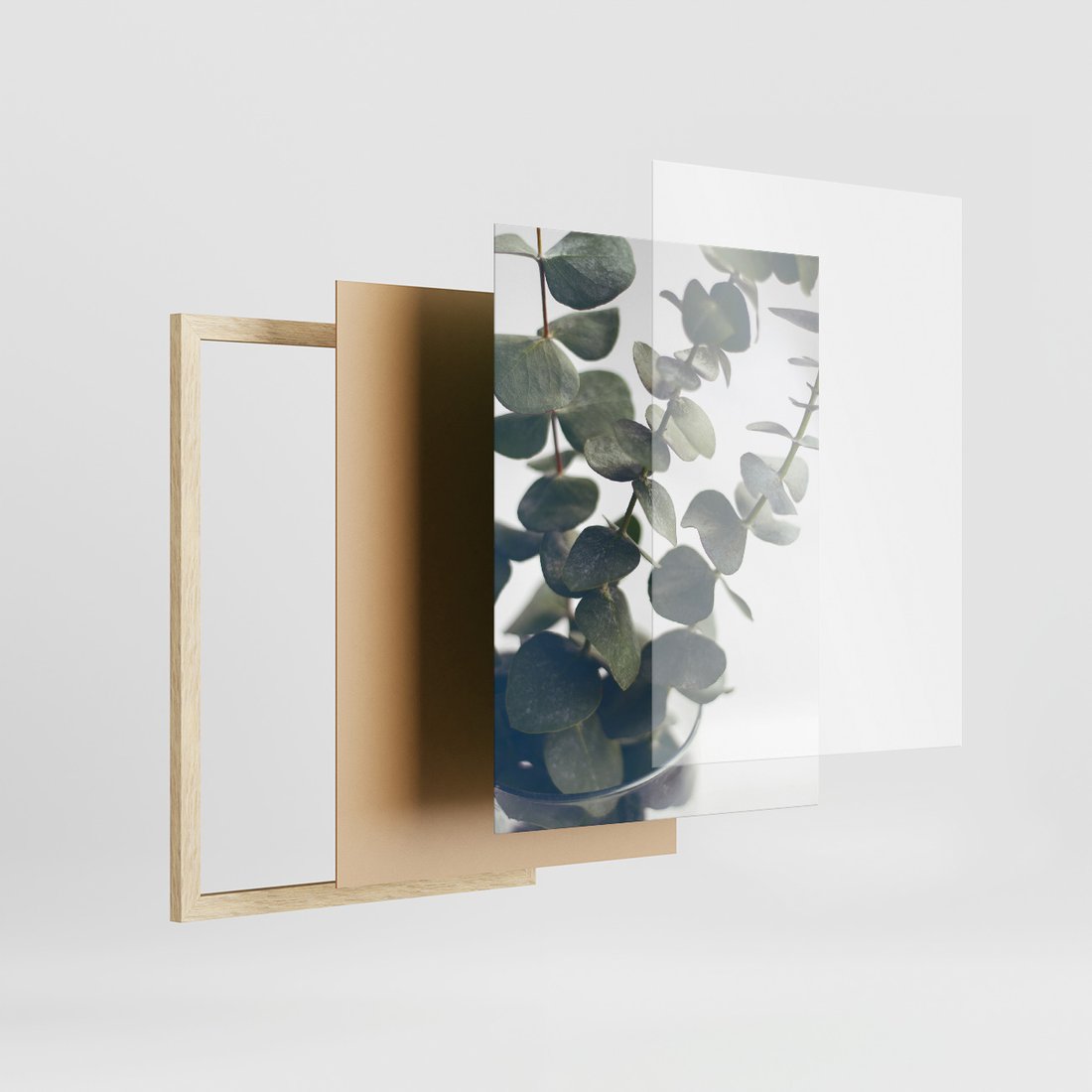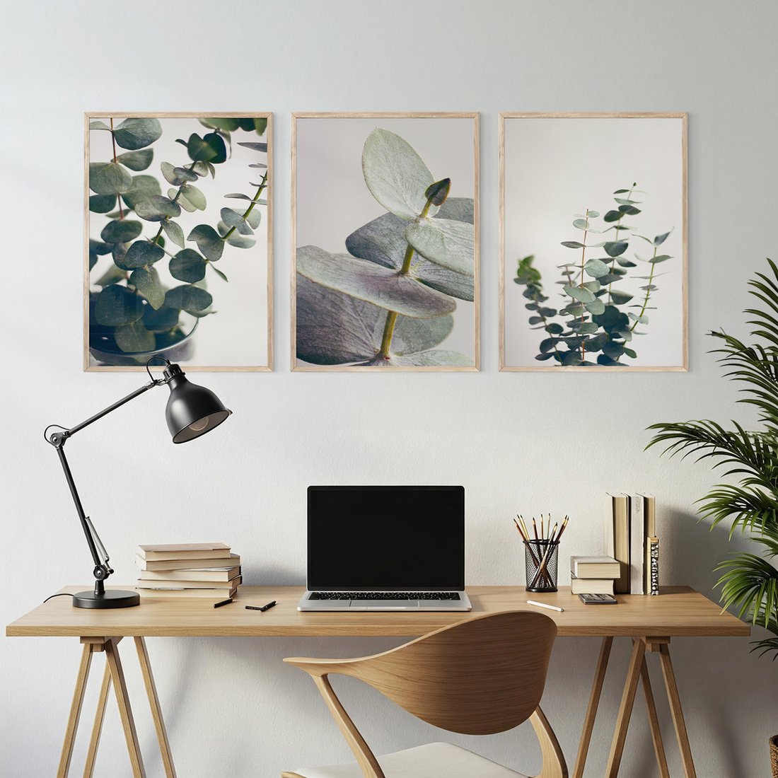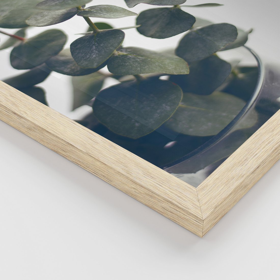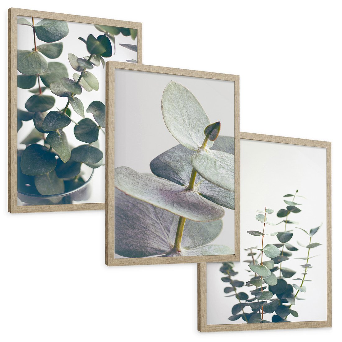 Zestaw obrazy w ramie, plakaty - eukaliptus, liście, gałązki - rama drewno