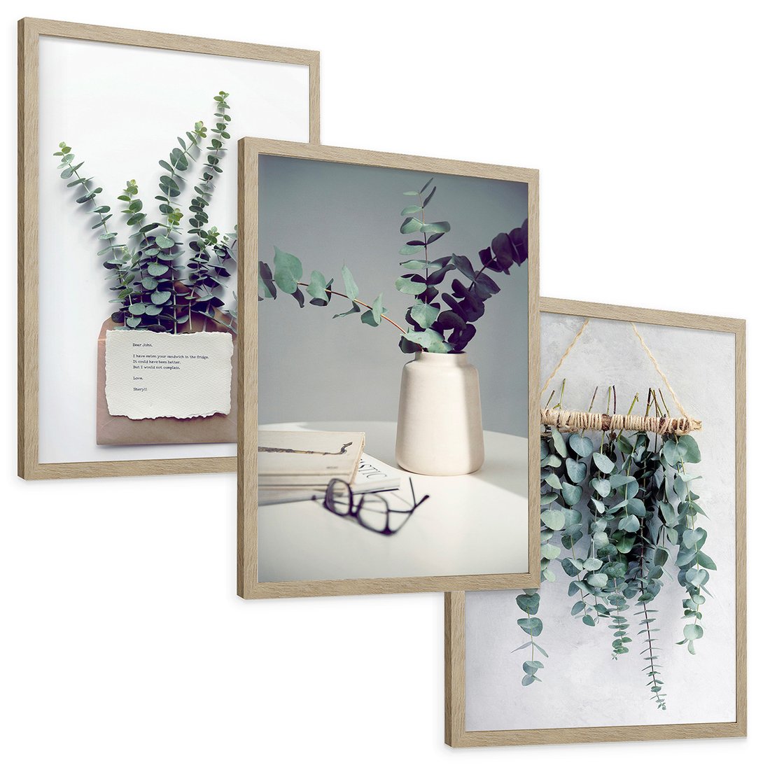 - Zestaw obrazy w ramie, plakaty - eukaliptus, liście, gałązki