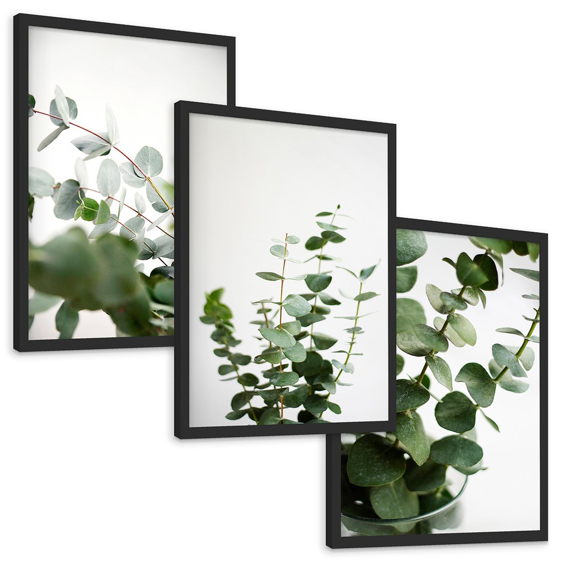 Zestaw obrazy w ramie, plakaty - eukaliptus, liście, roślina - rama czarna