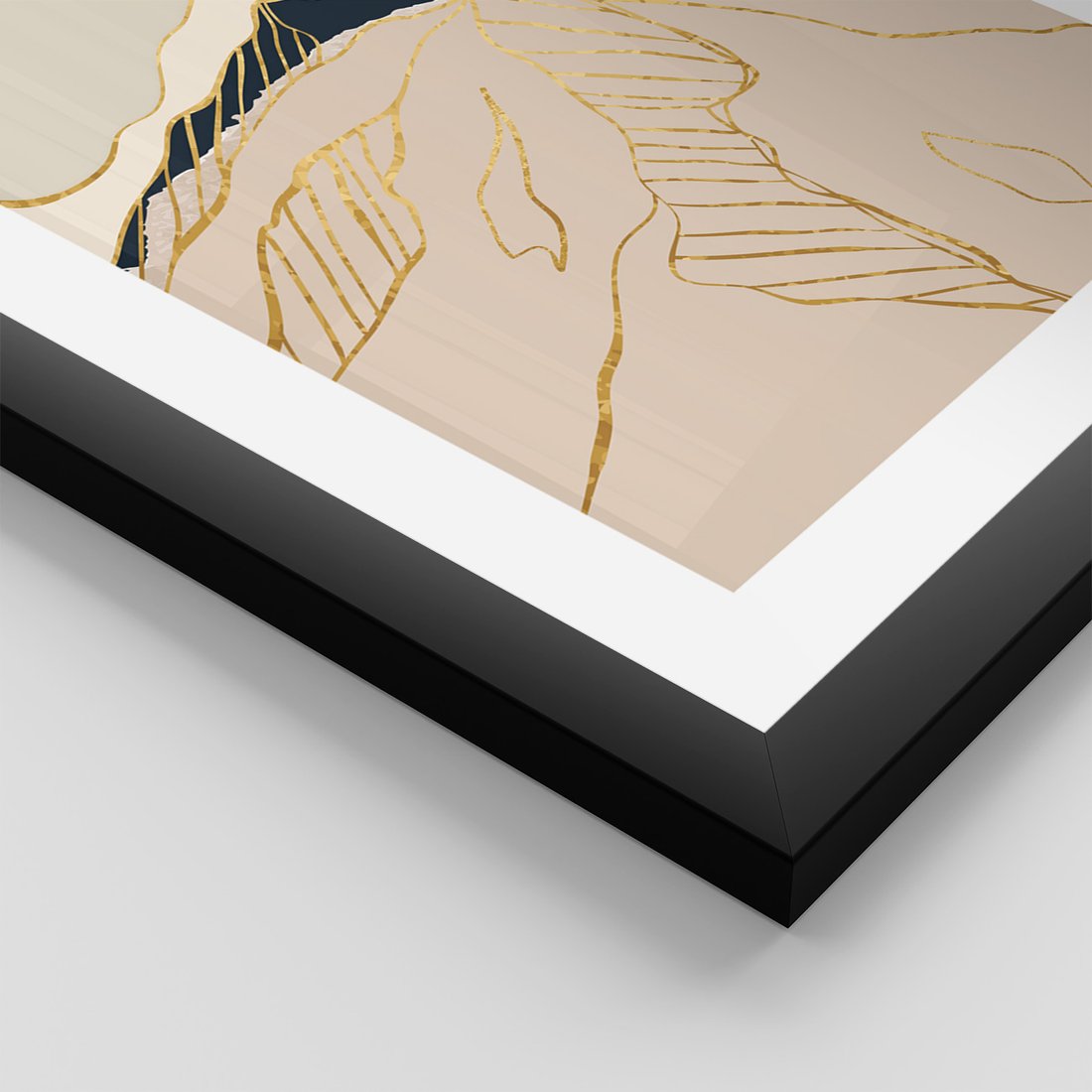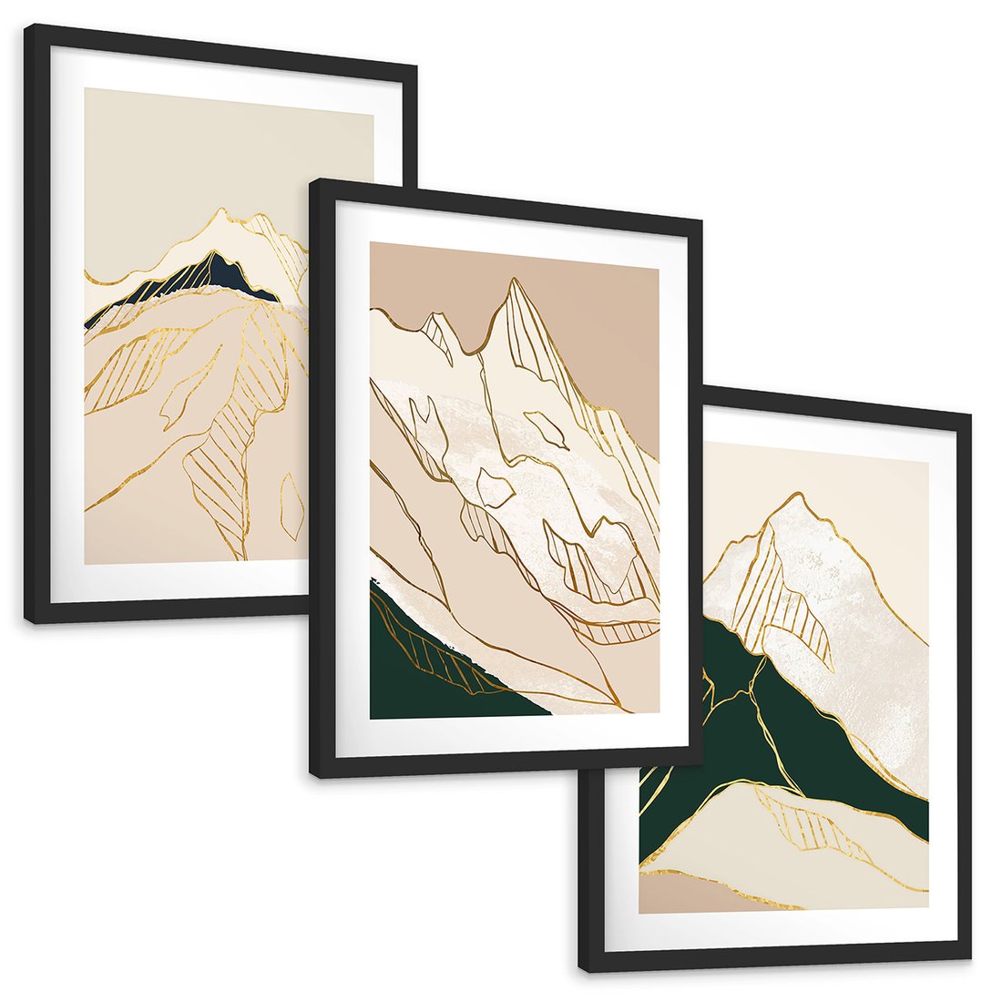 Zestaw obrazy w ramie, plakaty - góry, abstrakcja, złoto - rama czarna