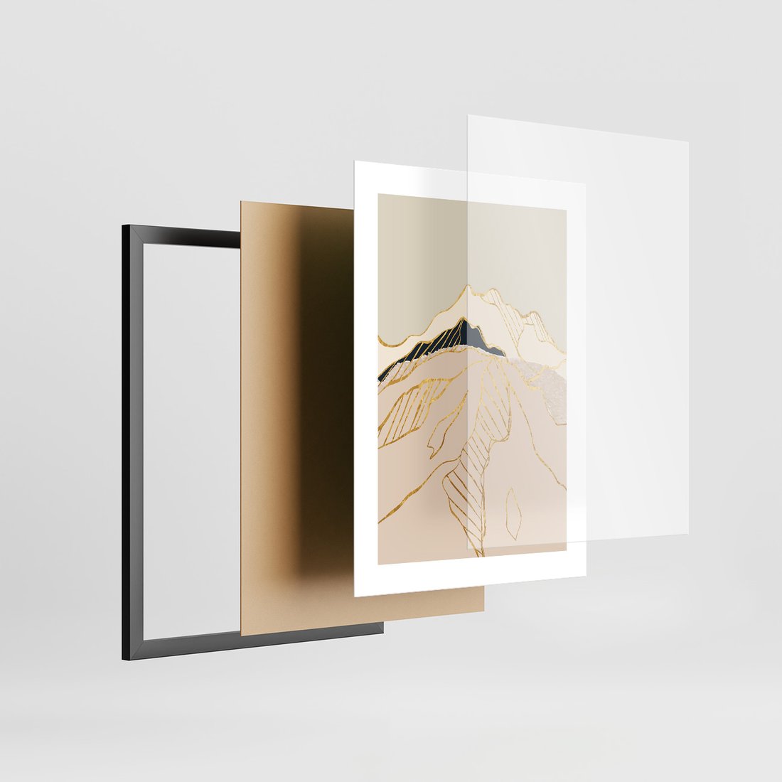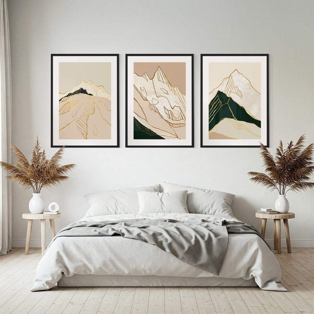 - Zestaw obrazy w ramie, plakaty - góry, abstrakcja, złoto