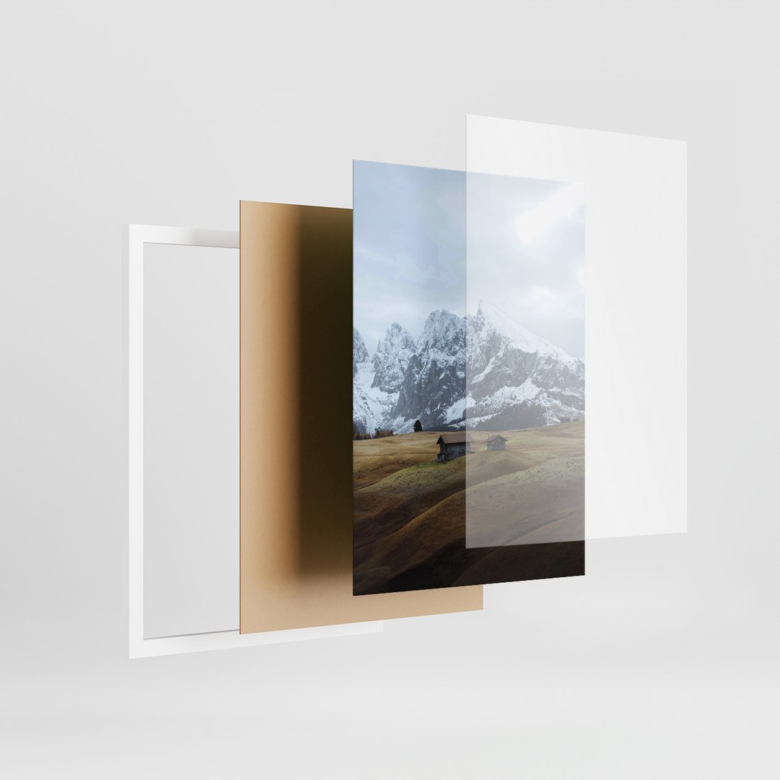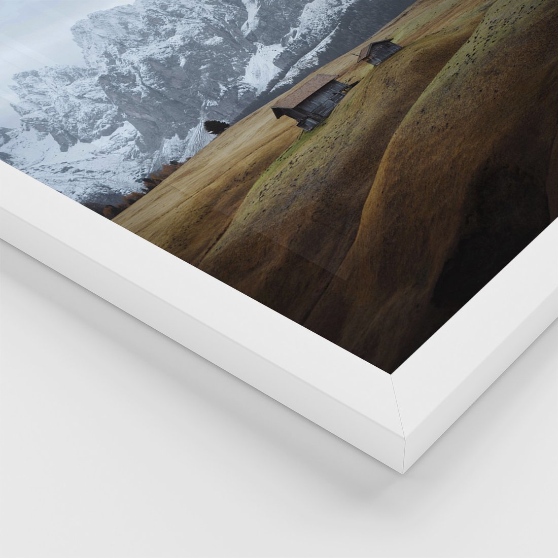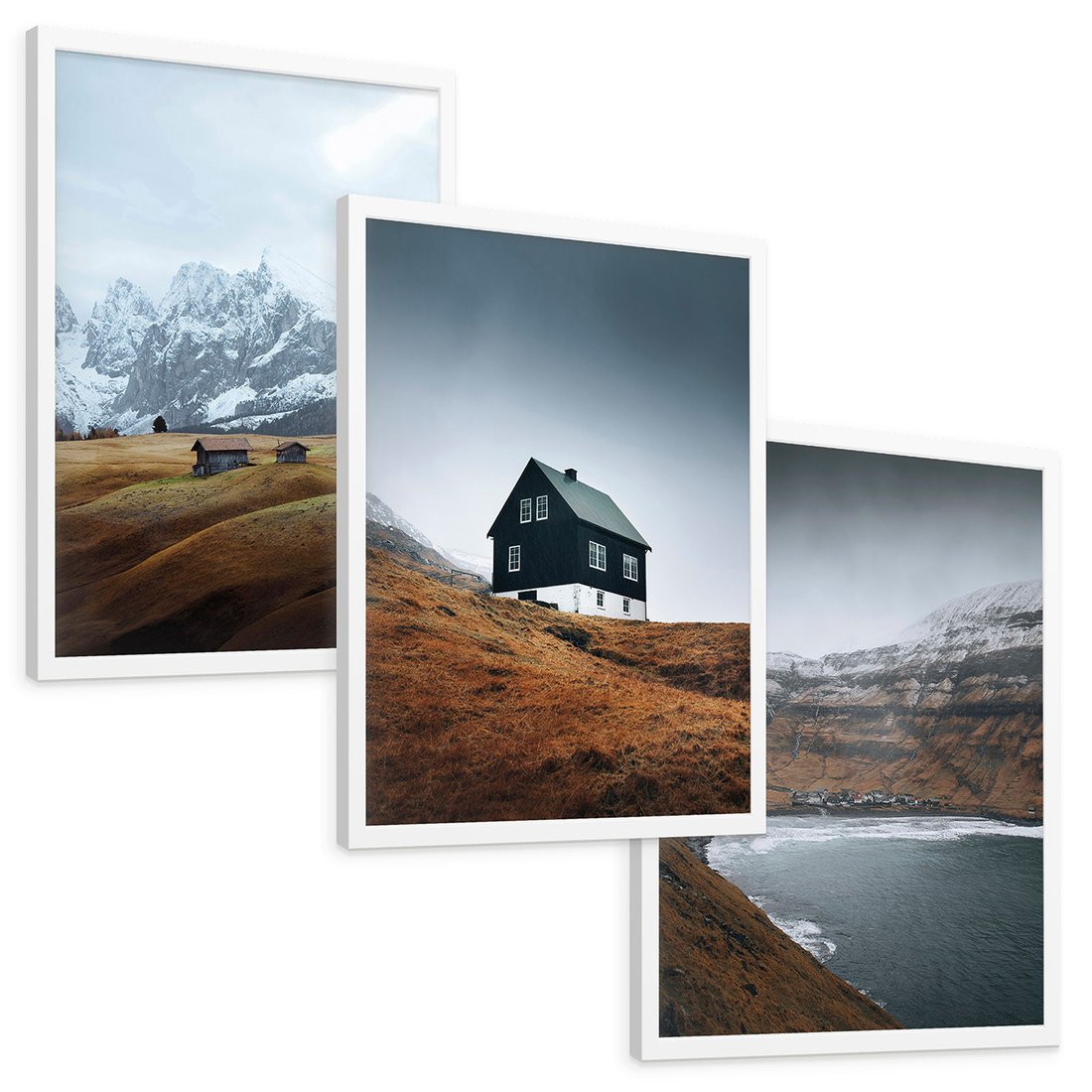 Zestaw obrazy w ramie, plakaty - góry, domy, krajobraz - rama biała