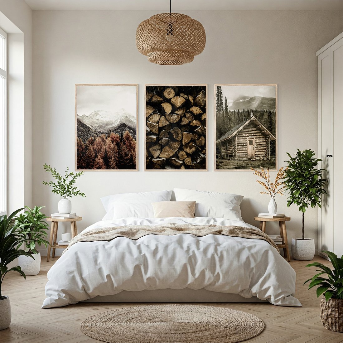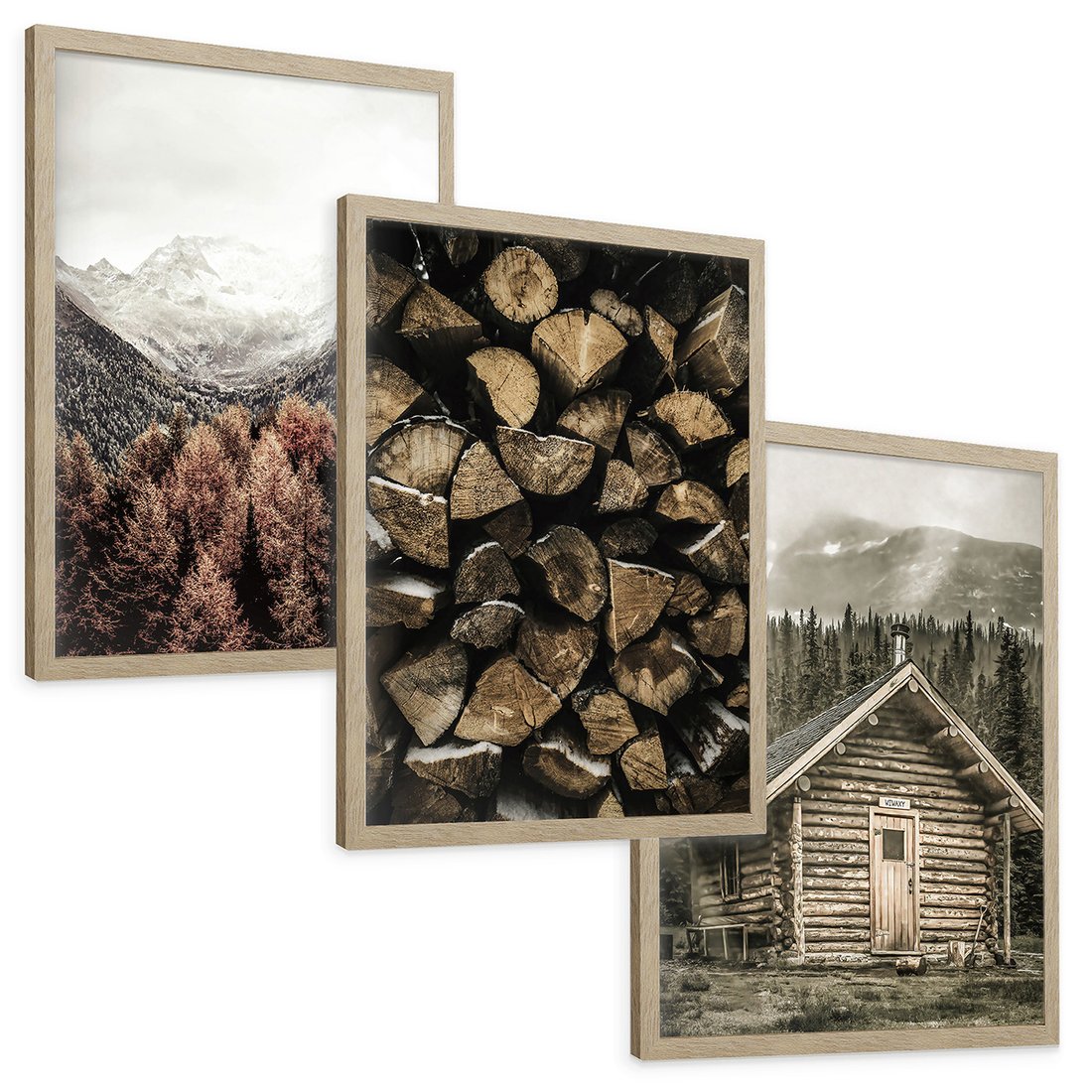 - Zestaw obrazy w ramie, plakaty - góry, drewno, las