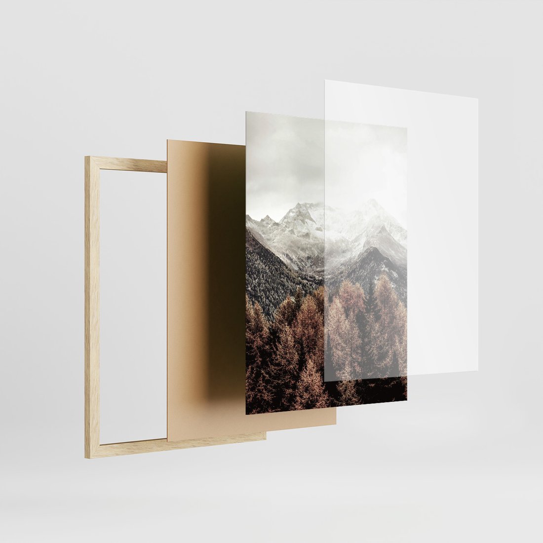 Zestaw obrazy w ramie, plakaty - góry, drewno, las - rama drewno