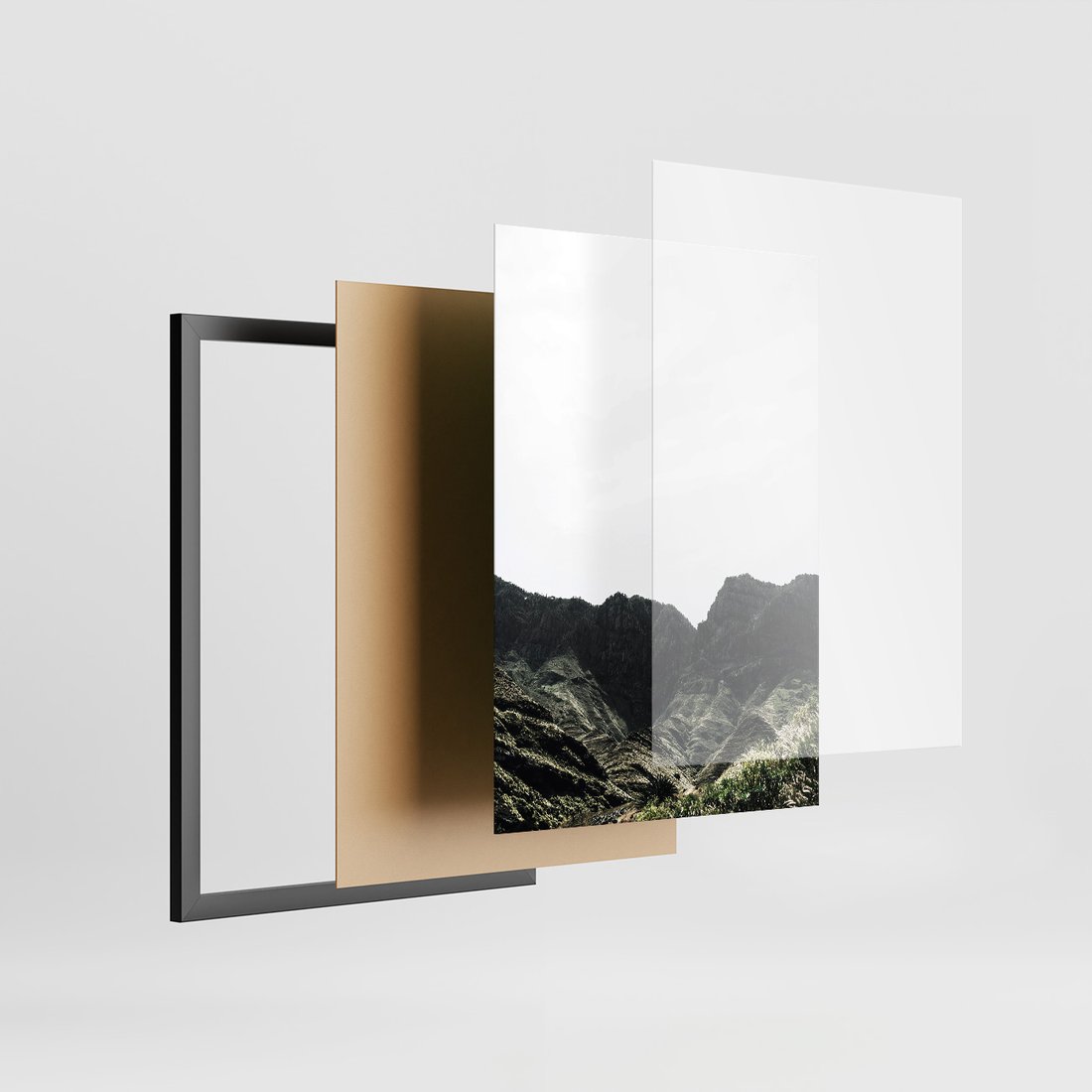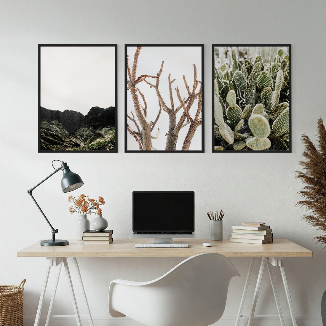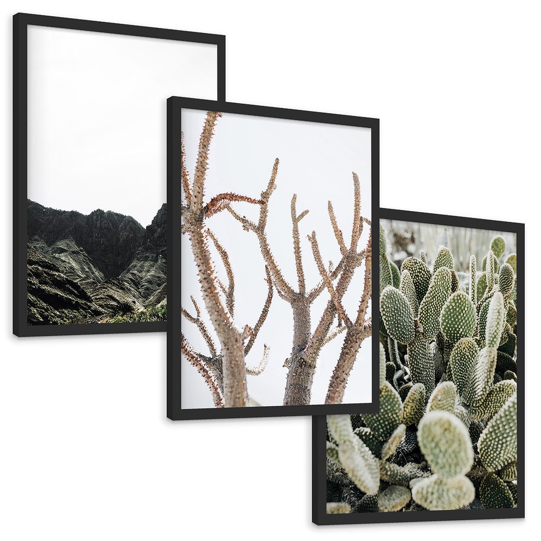 Zestaw obrazy w ramie, plakaty - góry, kaktus, rośliny - rama czarna