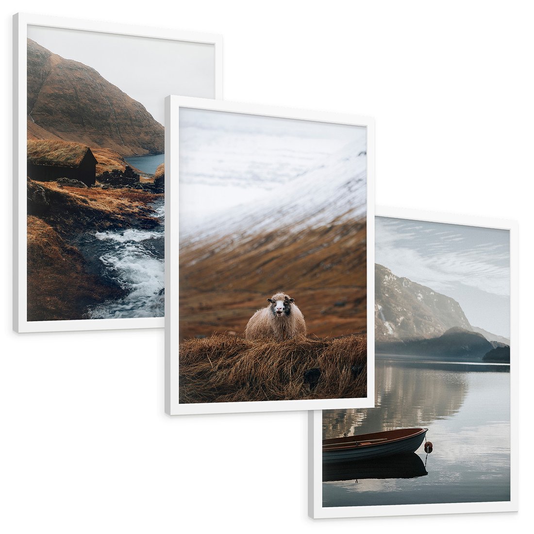 Zestaw obrazy w ramie, plakaty - góry, krajobraz, natura - rama biała