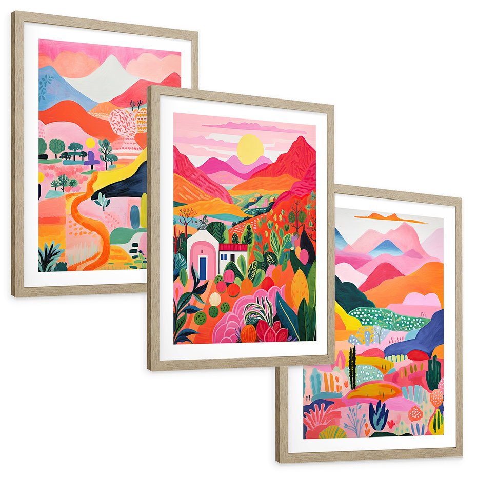 Zestaw obrazy w ramie, plakaty - góry, krajobraz, natura - rama drewno