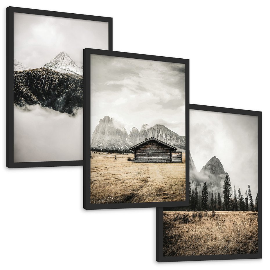 Zestaw obrazy w ramie, plakaty - góry, natura, krajobraz - rama czarna