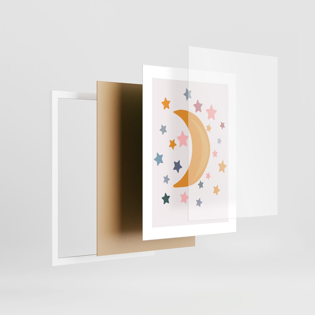 - Zestaw obrazy w ramie, plakaty - gwiazdy, księżyc, tęcza