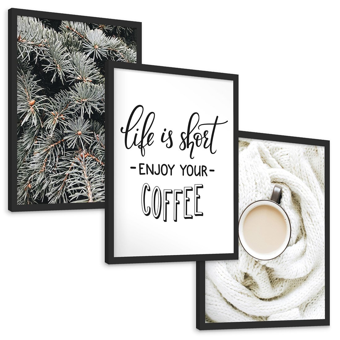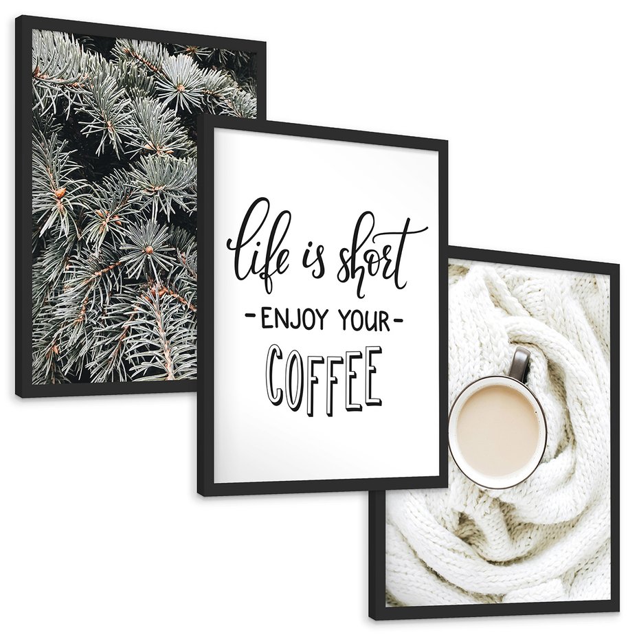 - Zestaw obrazy w ramie, plakaty - igły, kawa, sweter