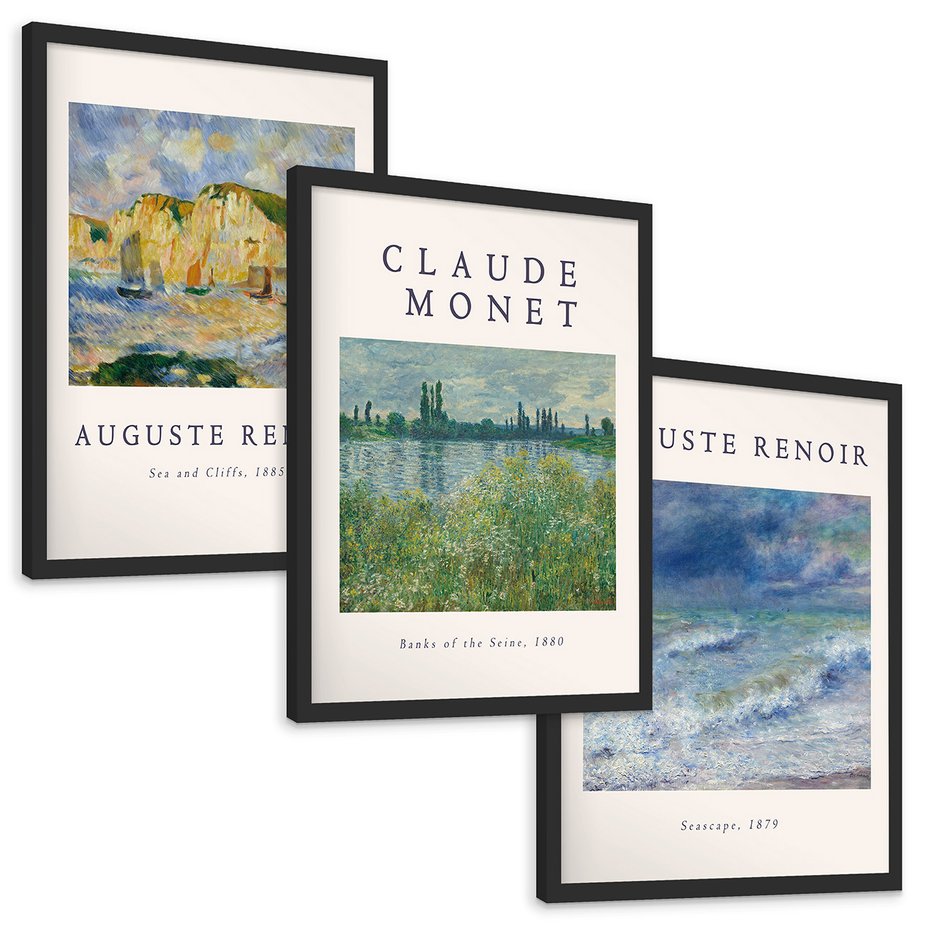 Zestaw obrazy w ramie, plakaty - impresjonizm, pejzaż, morze - rama czarna