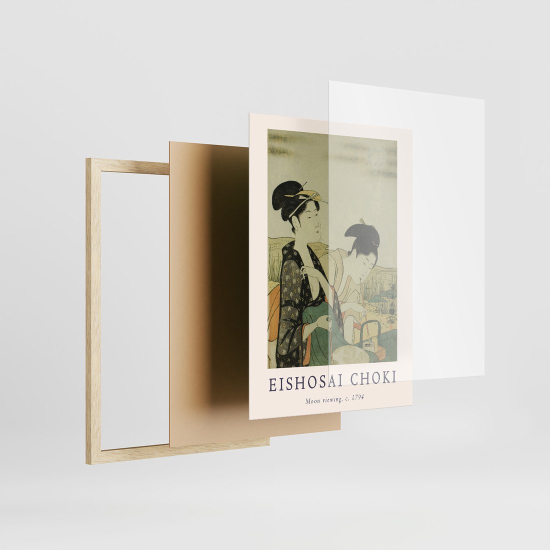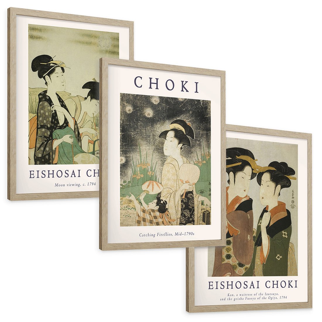Zestaw obrazy w ramie, plakaty - japonizm, kobiety, portret - rama drewno