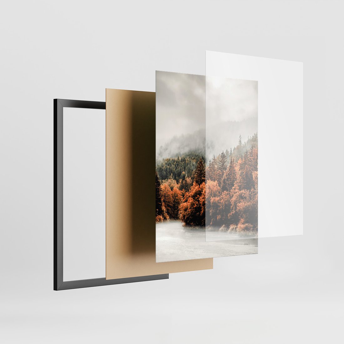 Zestaw obrazy w ramie, plakaty - jesień, las, liście - rama czarna