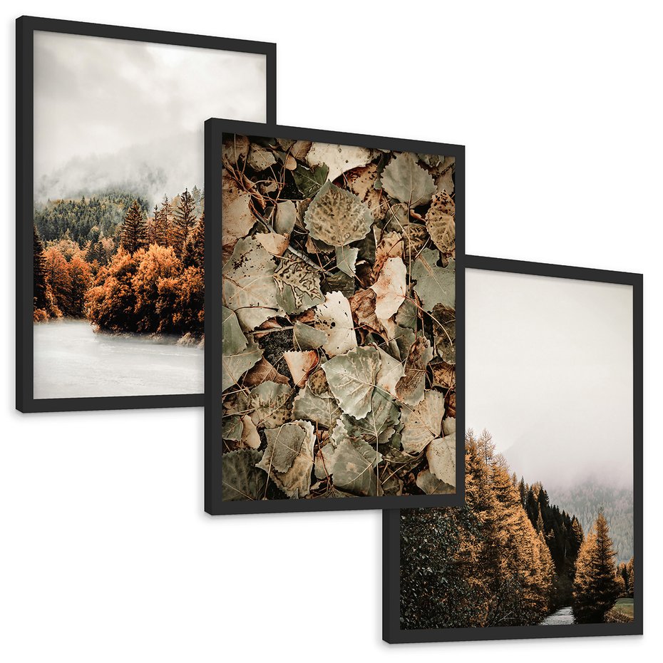 - Zestaw obrazy w ramie, plakaty - jesień, las, liście