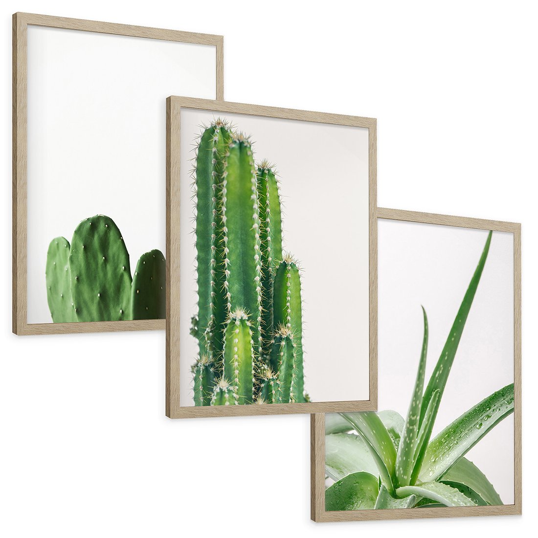 Zestaw obrazy w ramie, plakaty - kaktus, roślina, aloes - rama drewno